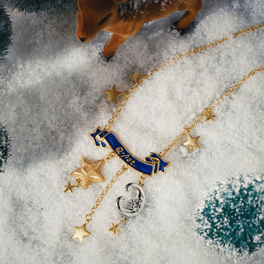 The storytelling necklace brings to life the tale of “Croissant’s Crescent Dream.”