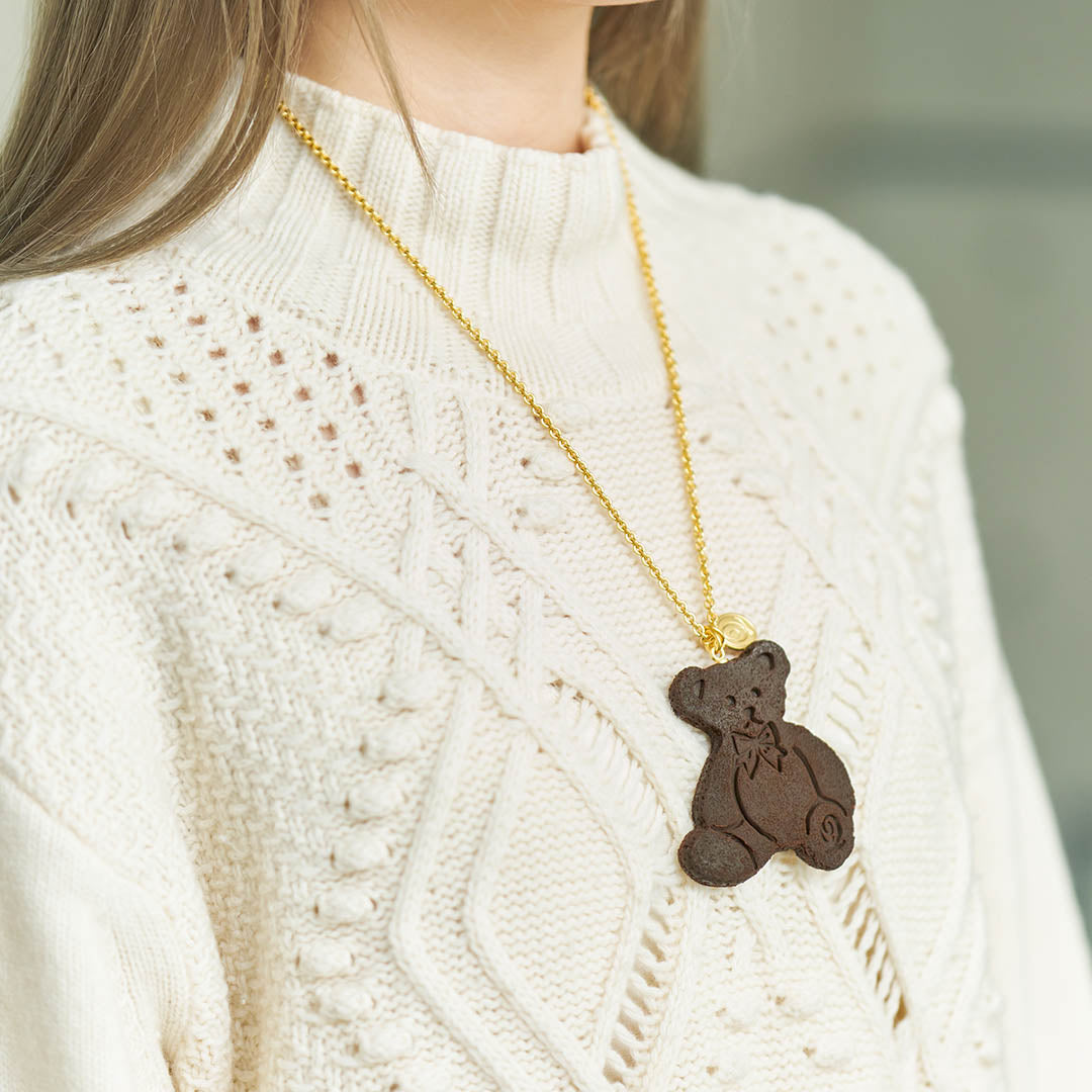 Freshly Baked Teddy Bear Cookie Necklace (Cocoa)【Japan Jewelry】