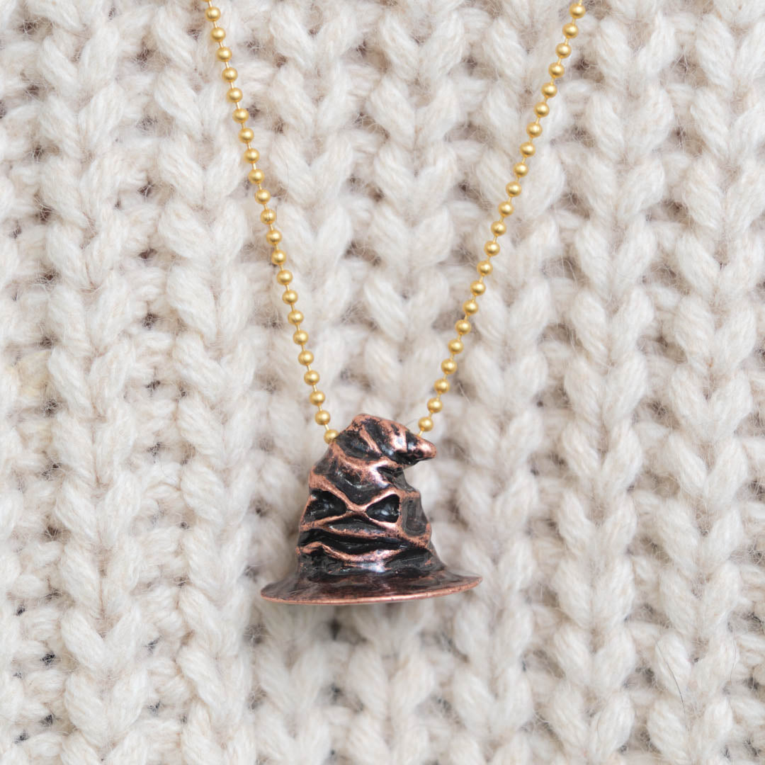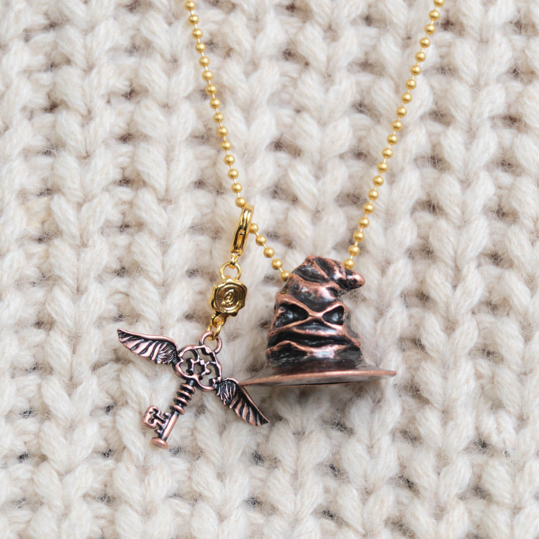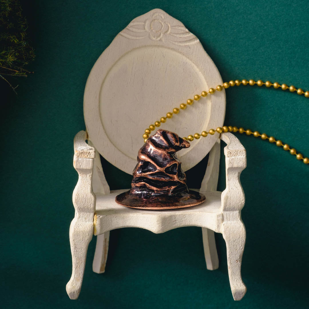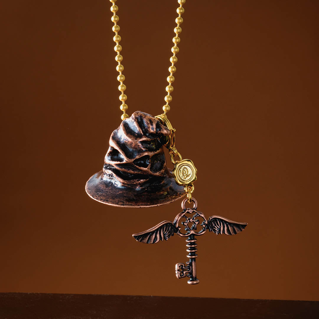 Which house will it be...? The Sorting Hat in the iconic scene is recreated as a necklace with glossy chocolate-inspired design. With its enchanting vibe, this whimsical piece seems almost ready to come to life. Immerse yourself fully in the fantastical world of Harry Potter.