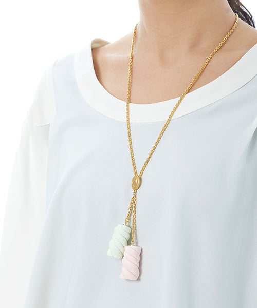 Marshmallow Lariat Necklace (Light Pink & Light Green)【Japan Jewelry】