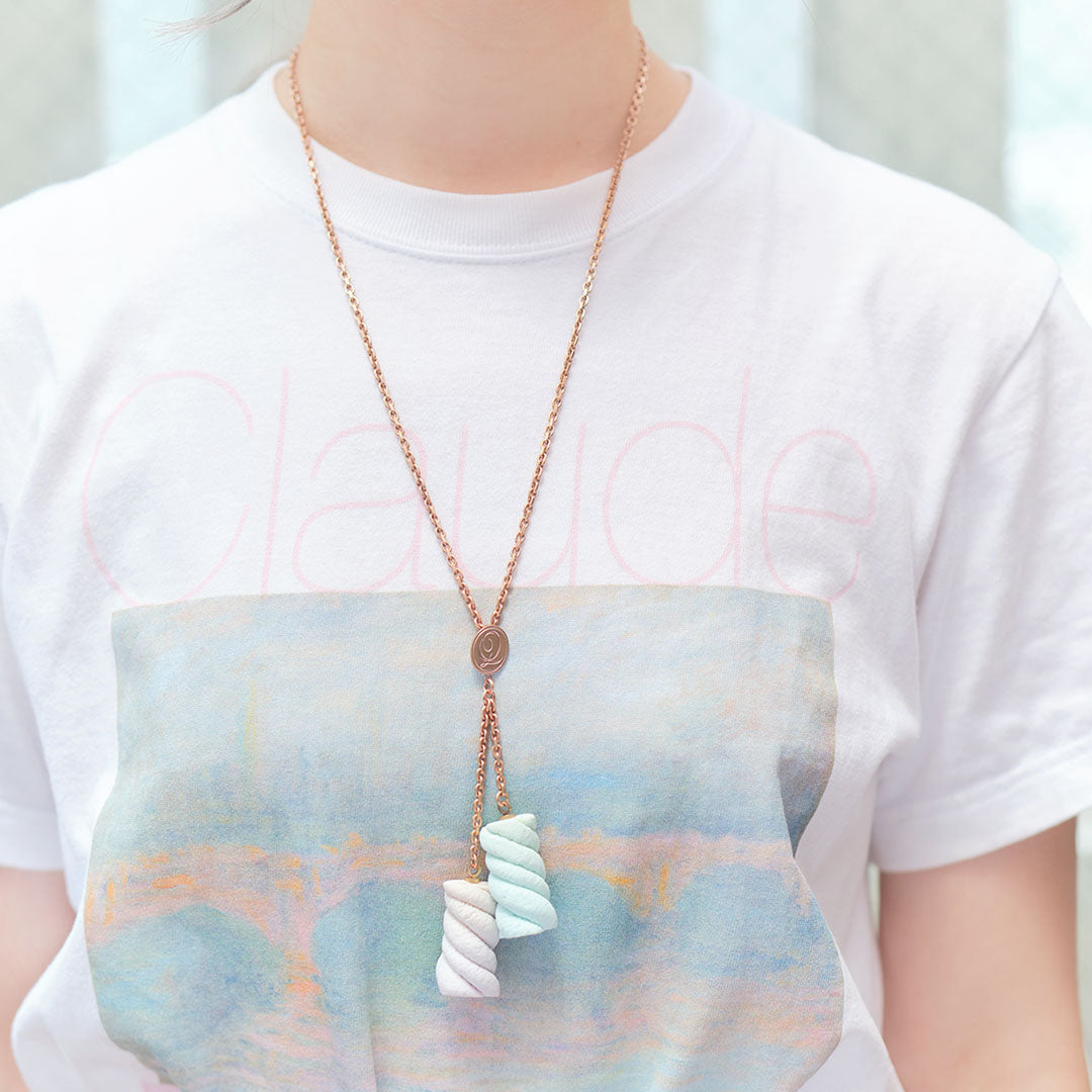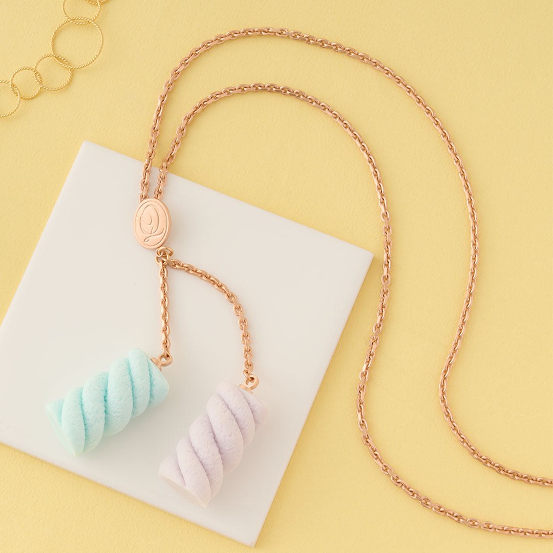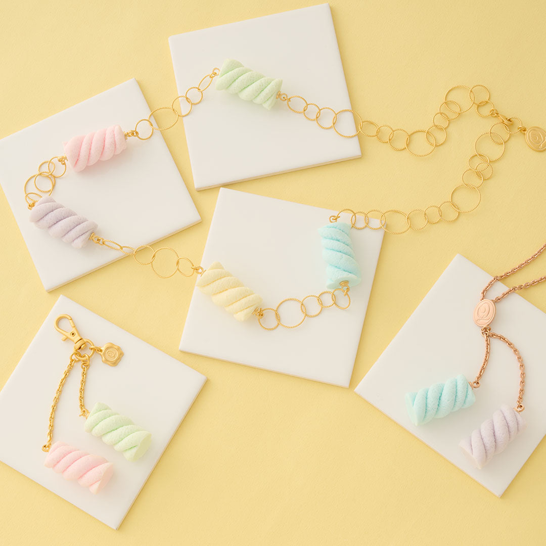 Pastel colored marshmallow became a cute and realistic necklace to decorate your outfit. The delicate touch and details make it like a real sweet. Made in Japan and carefully finished by craftsmen.