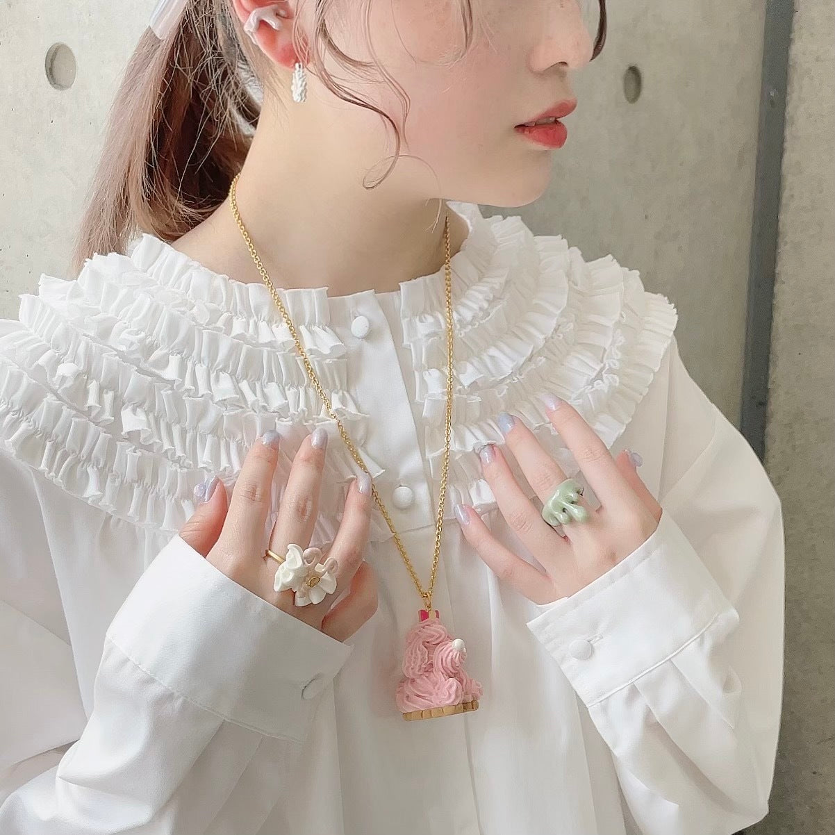 Wearing it and you'll feel like you're taking a walk♪ Finished by squeezing plenty of cream into the tart dough, the adorable poodle cake covered with fluffy fur. The round and voluminous styling and droopy ears are too cute to handle. The little pearl nose and ribbon on the head are elegant.