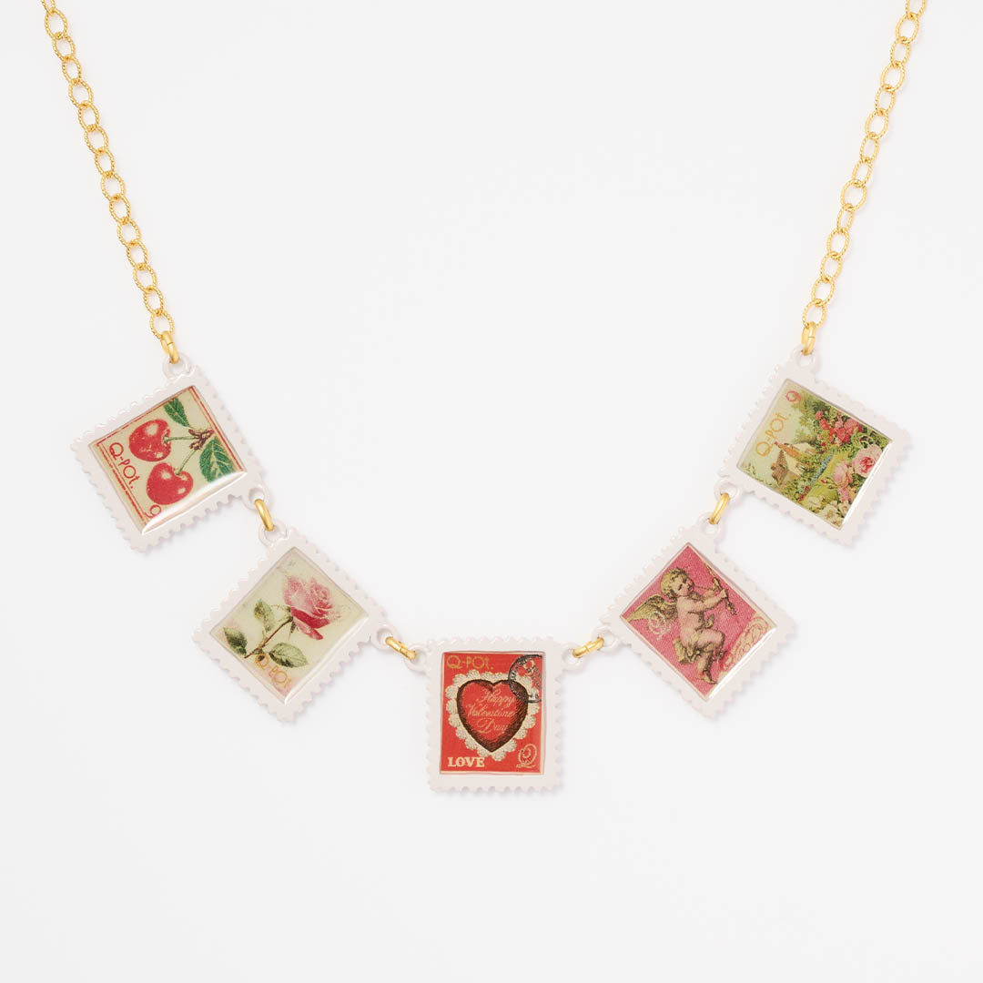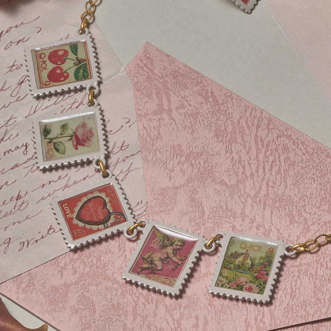 From a heart-shaped cake and celestial angel to blooming rose, flower garden, and twin cherries... Receive the sweet transmissions of Q-POST. and feel the hidden meanings woven into each beautiful stamp.