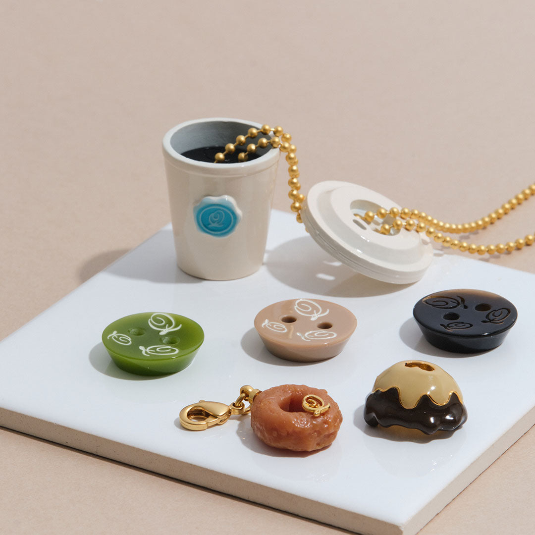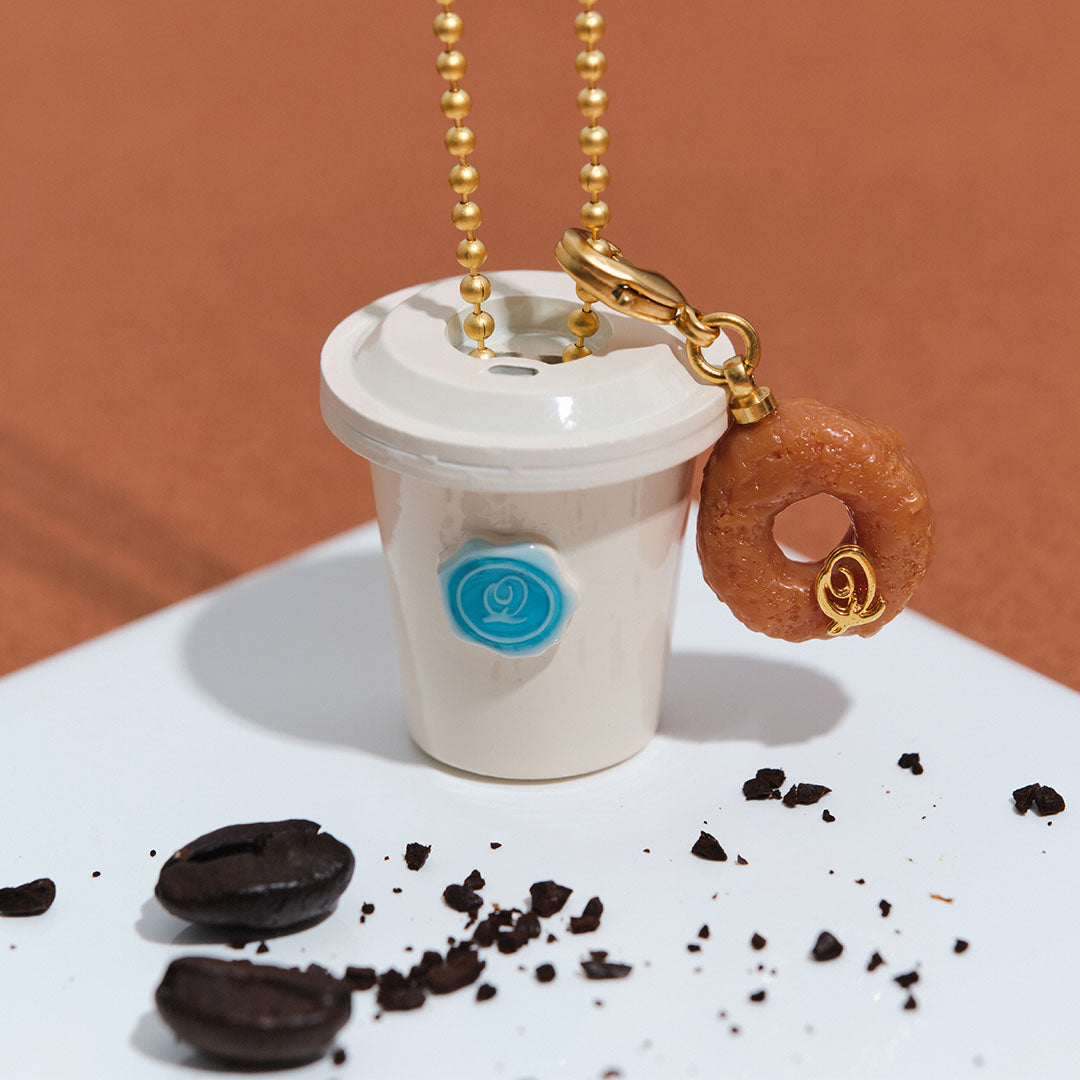 A snapshot of everyday happiness, take a breather with Q-pot. Coffee. and indulge in a blissful moment. When you open the cup adorned with a melting wax logo, Q-pot. original drip coffee awaits. Furthermore, for those with a sweet tooth, whipped cream and donut toppings are available! By threading separate charms onto the chain, it's easy to customize toppings to suit your mood.