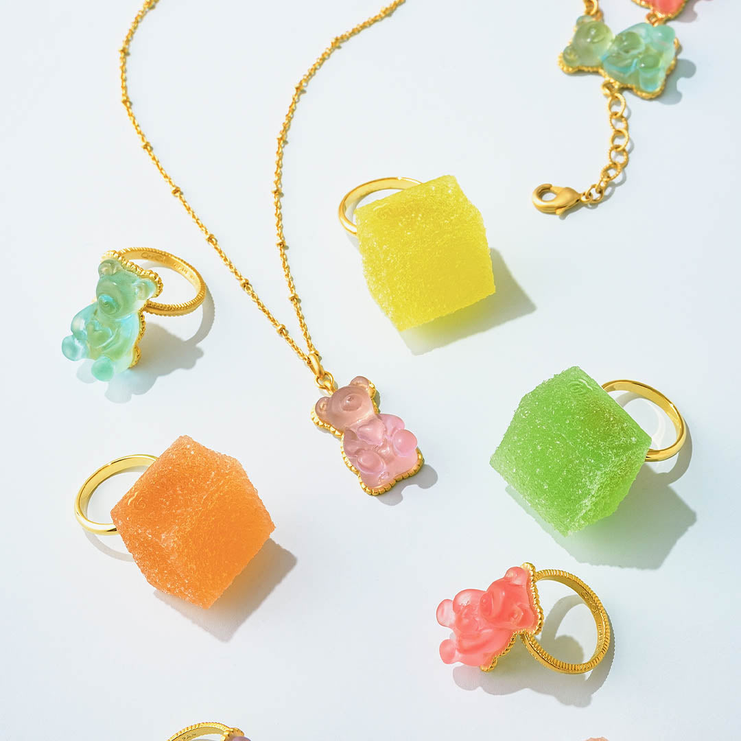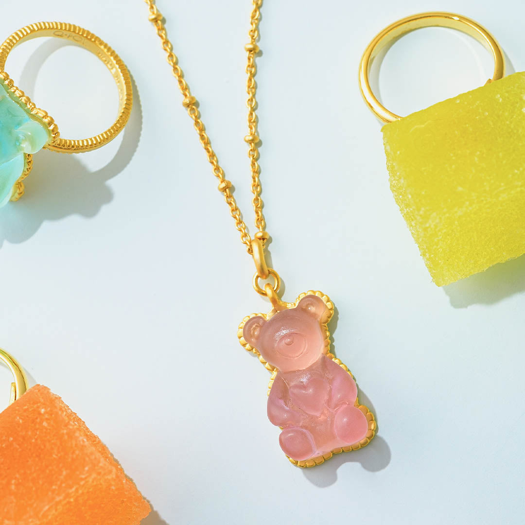 The juicy Teddy Bear Gummy with clear color and texture just like a real one. The heart-hugging look and the shape is adorable! The simple necklace adds fun to your outfit.