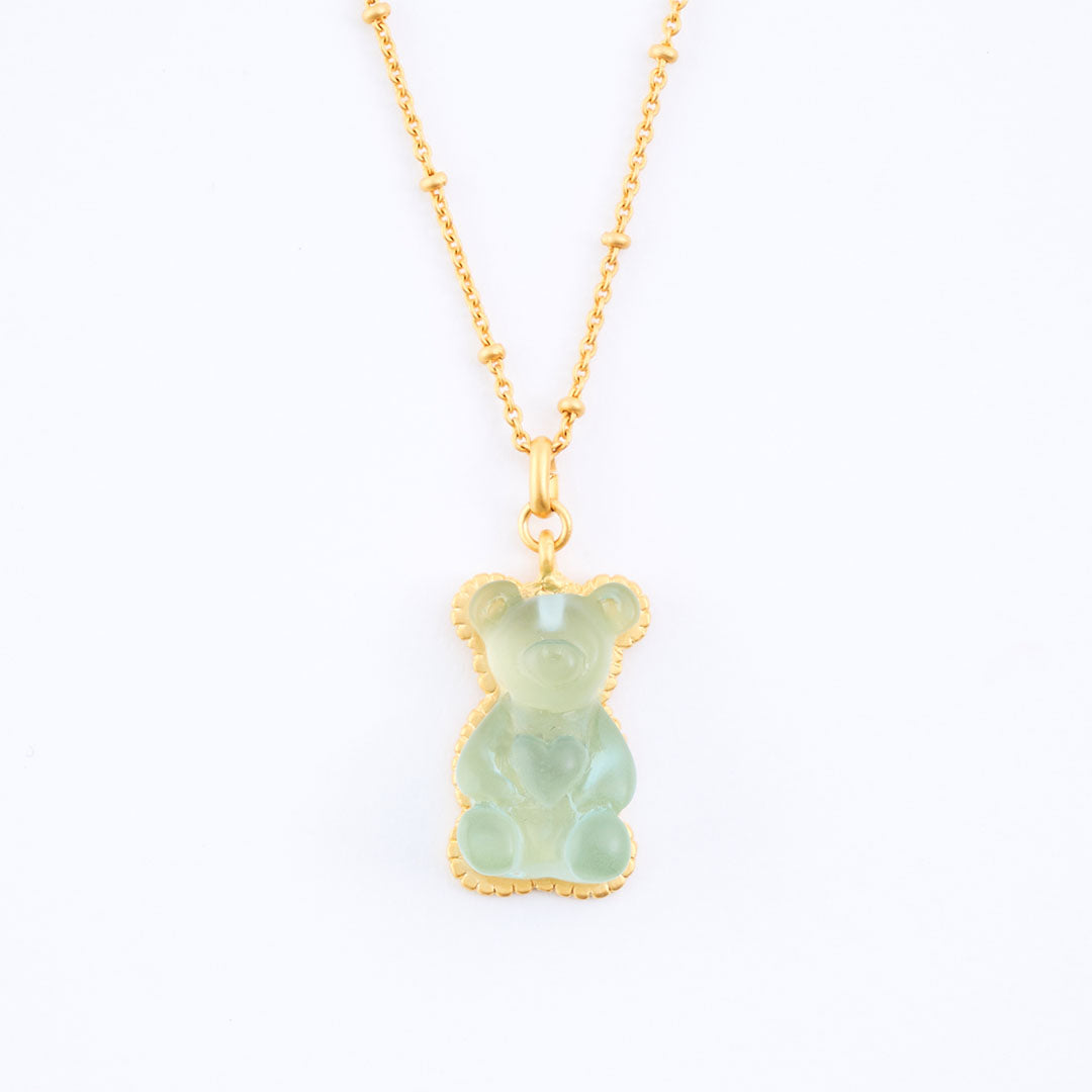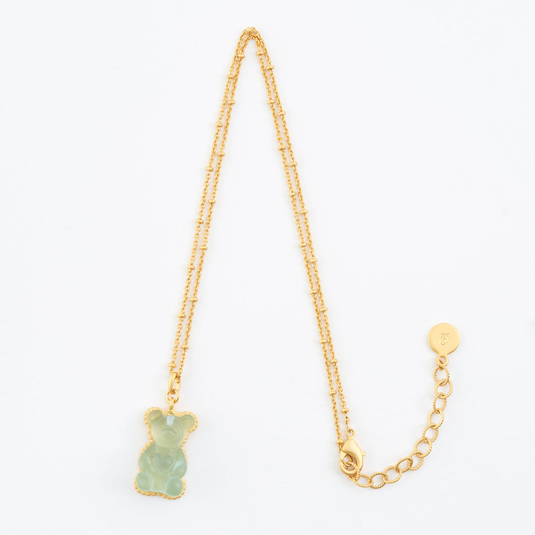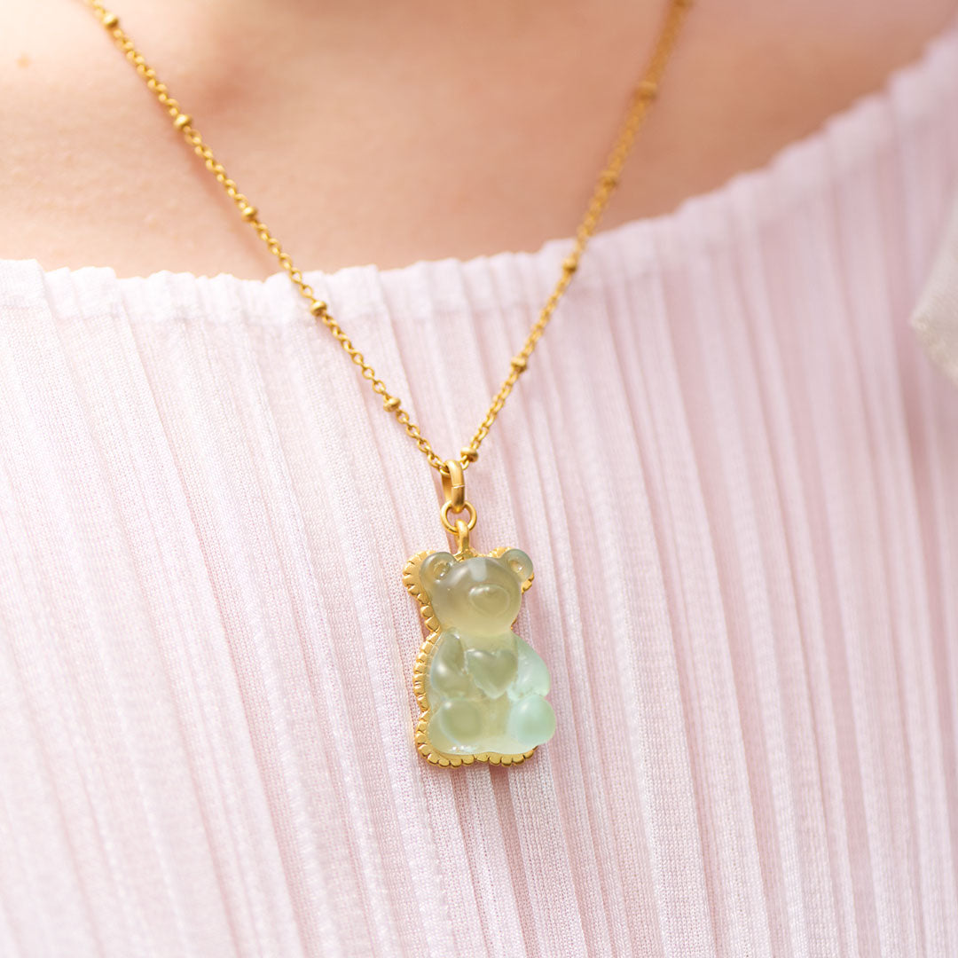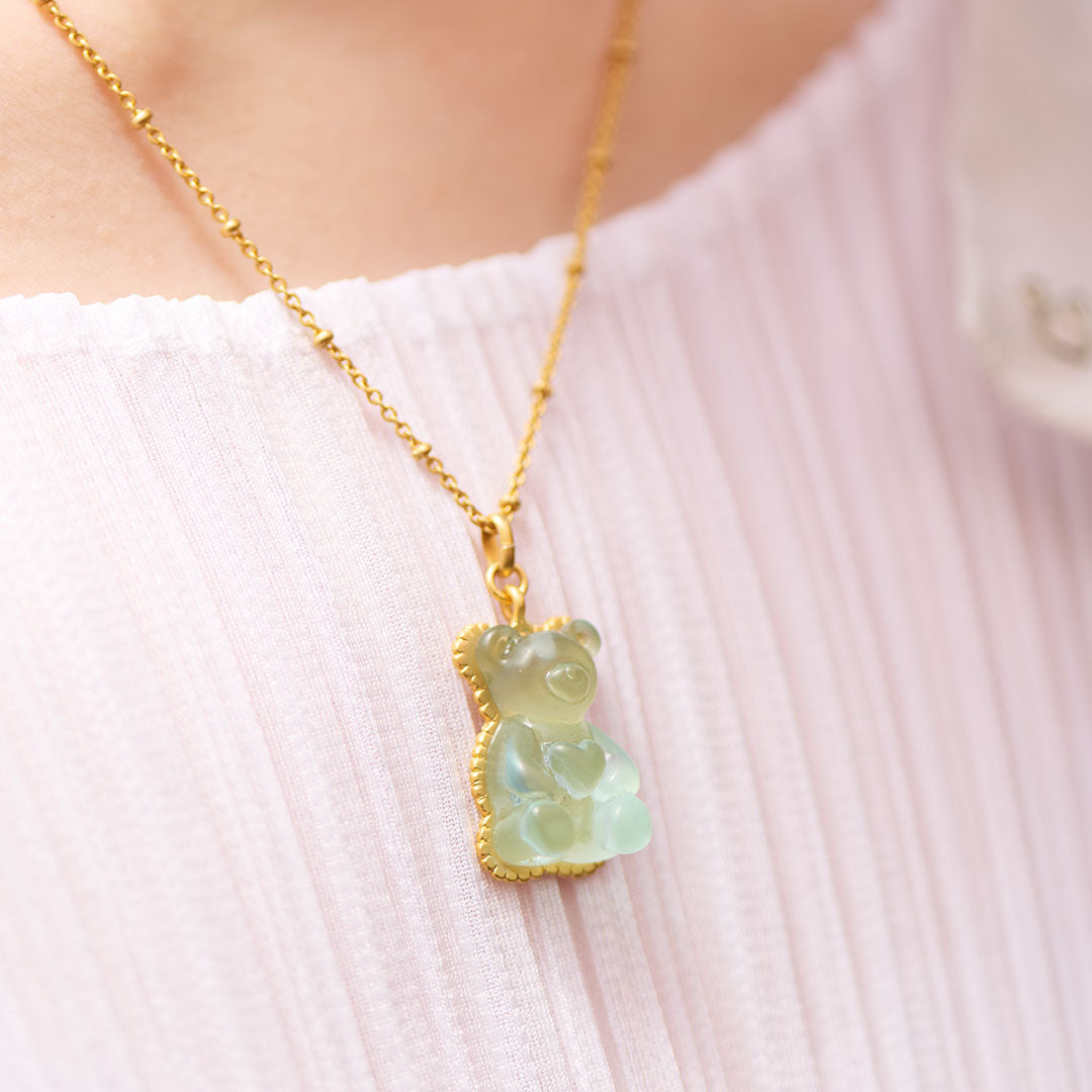 The juicy Teddy Bear Gummy with clear color and texture just like a real one. The heart-hugging look and the shape is adorable! The simple necklace adds fun to your outfit.