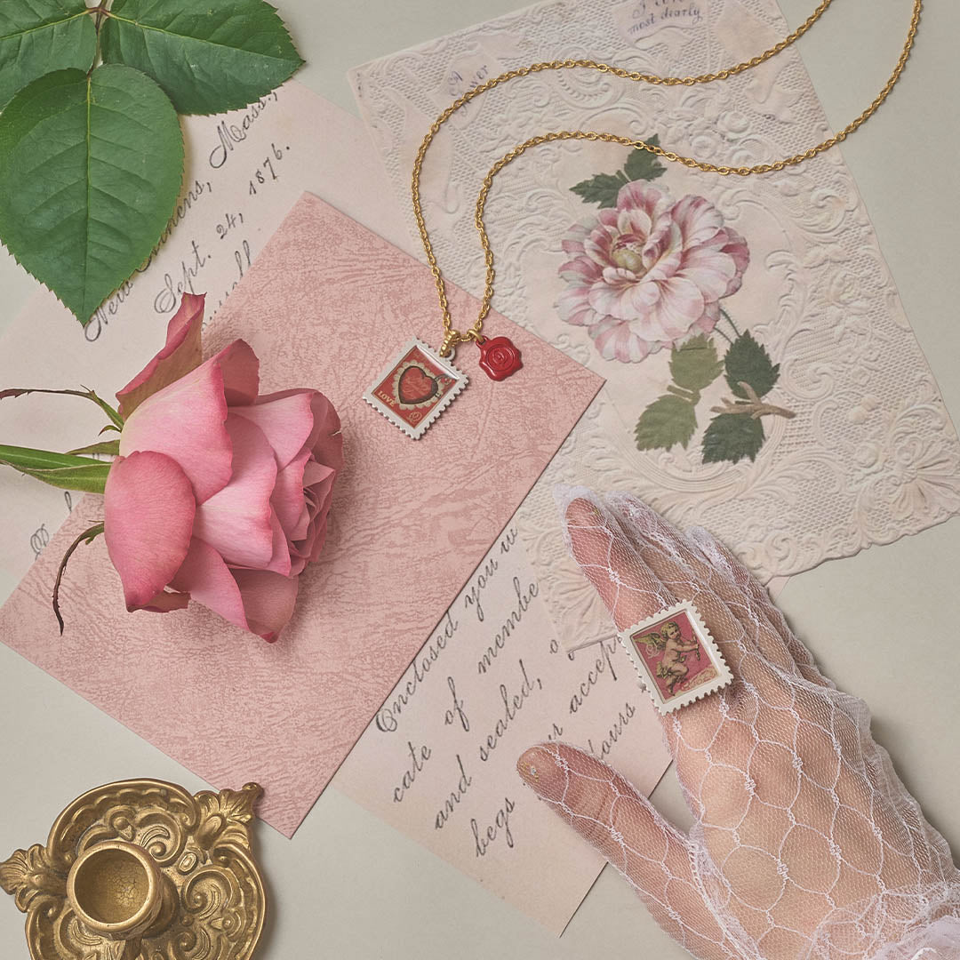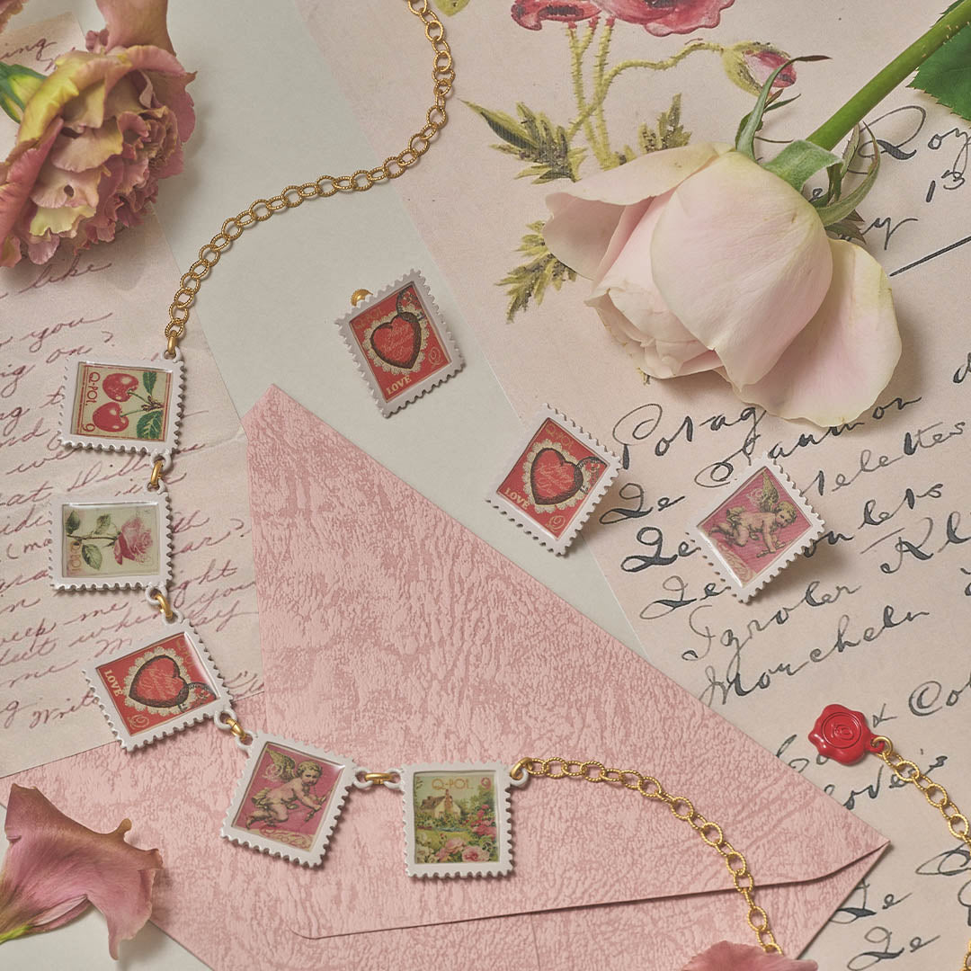 From a heart-shaped cake and celestial angel to blooming rose, flower garden, and twin cherries... Receive the sweet transmissions of Q-POST. and feel the hidden meanings woven into each beautiful stamp.