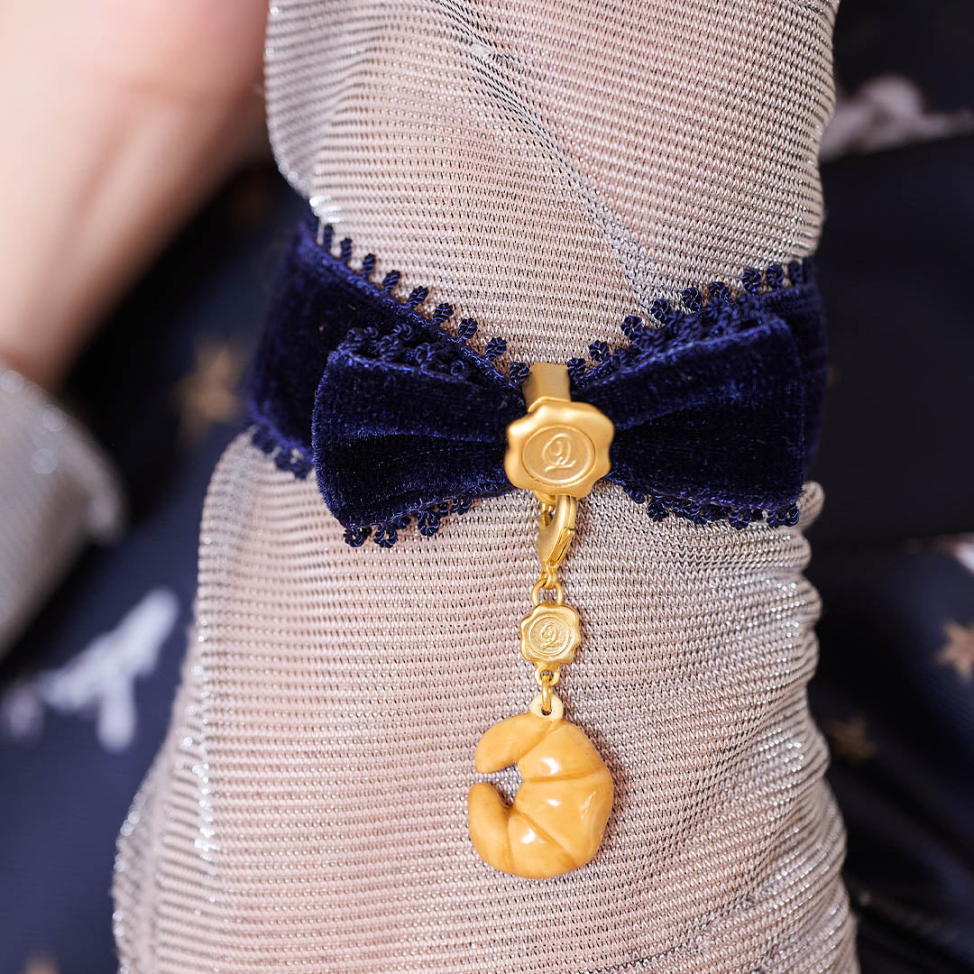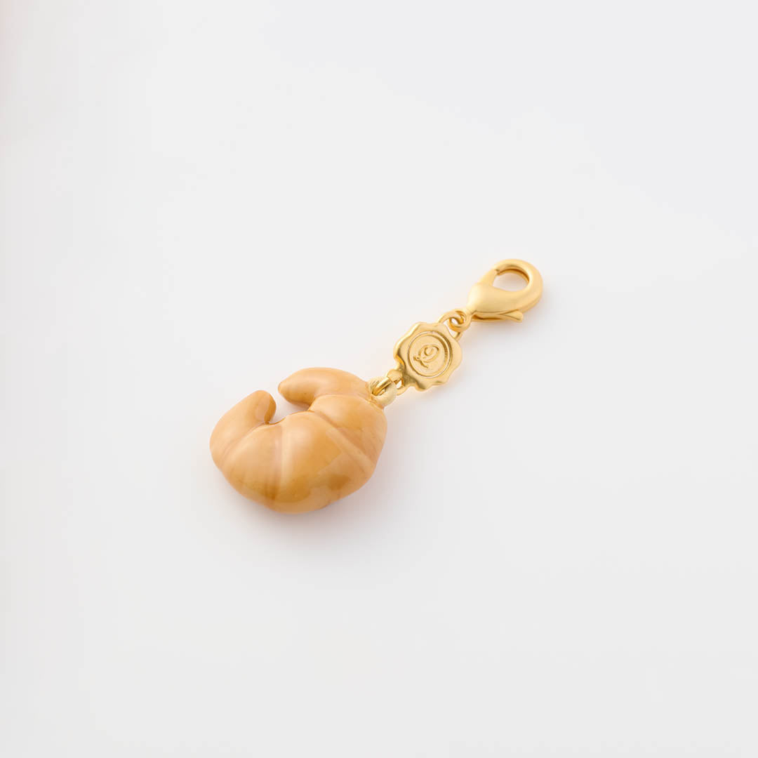 The petite croissant charm arched like the moon itself, capturing the image of a croissant dreaming to be the crescent moon.