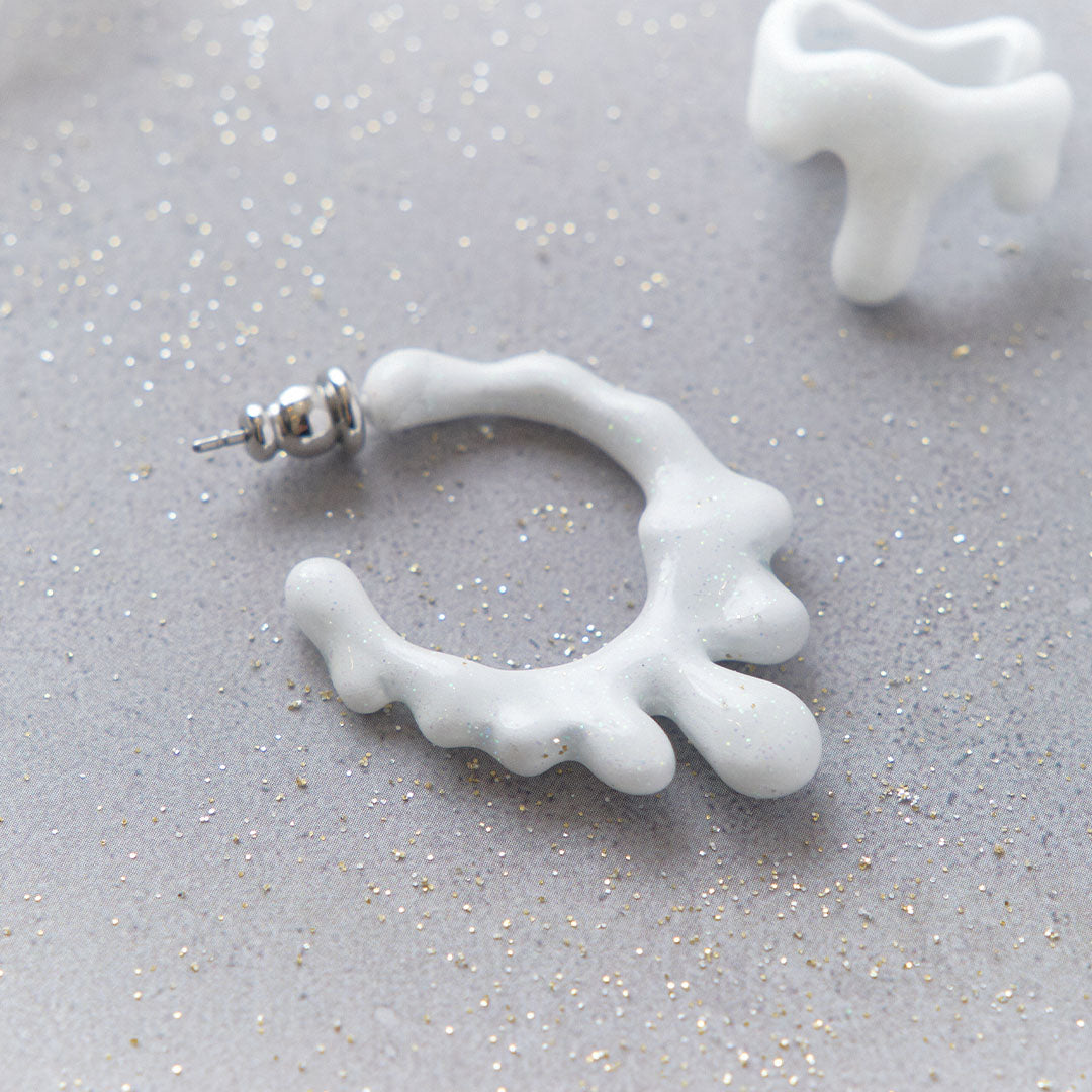 Melty Melt Hoop Pierced Earring (White Glitter / Single)【Japan Jewelry】
