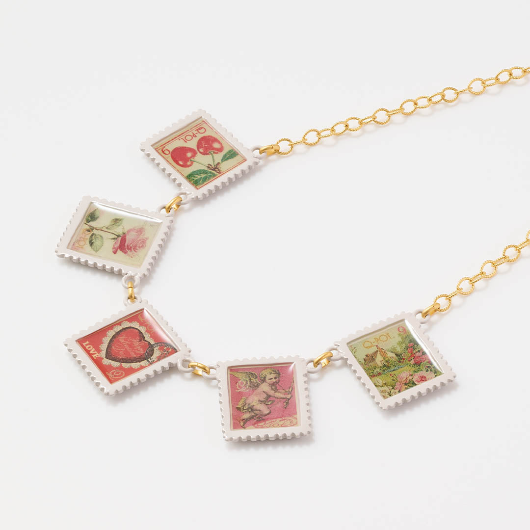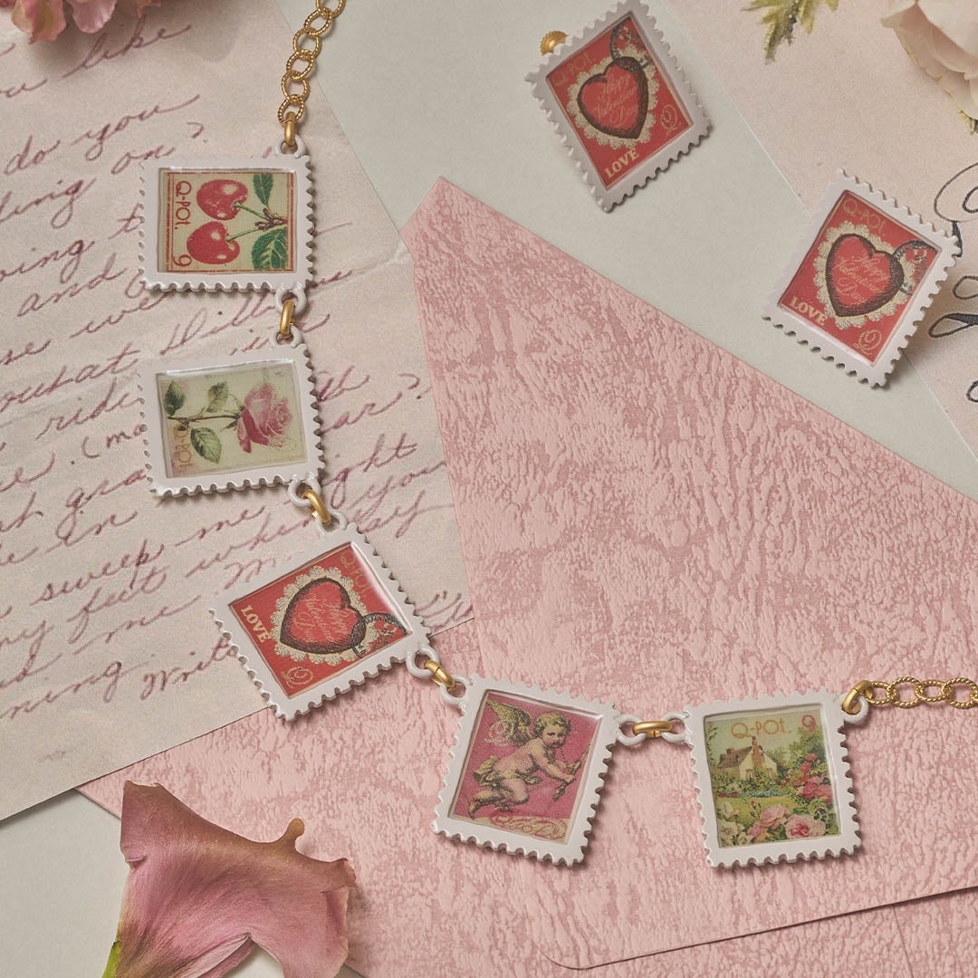 From a heart-shaped cake and celestial angel to blooming rose, flower garden, and twin cherries... Receive the sweet transmissions of Q-POST. and feel the hidden meanings woven into each beautiful stamp.