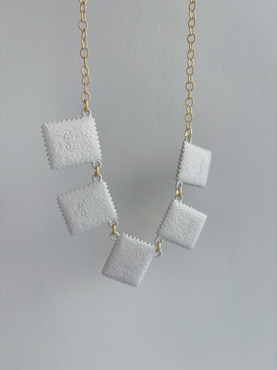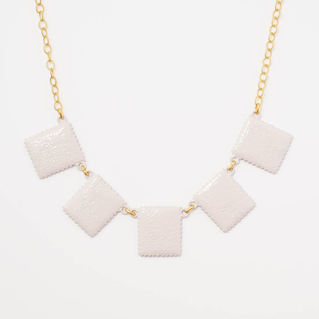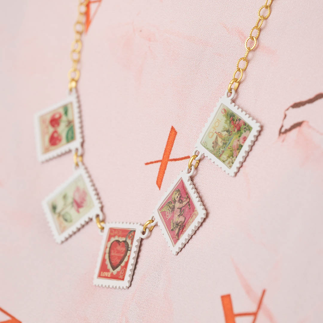 The centerpiece of this collection is a conceptual, statement-making necklace that links all five designs of the stamps. Attached to the necklace is a vibrant red sealing wax, carrying the meaning: "This feeling is a magic that can never be undone." The crimson hue symbolizes passion, life, and the very beat of a racing heart.