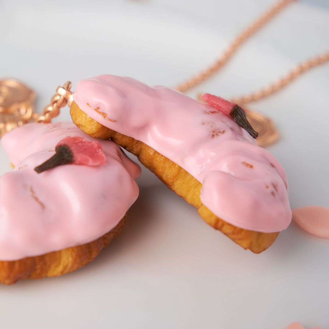 A crisp, fragrantly baked croissant, delicately coated in white chocolate with a hint of cherry blossom.
