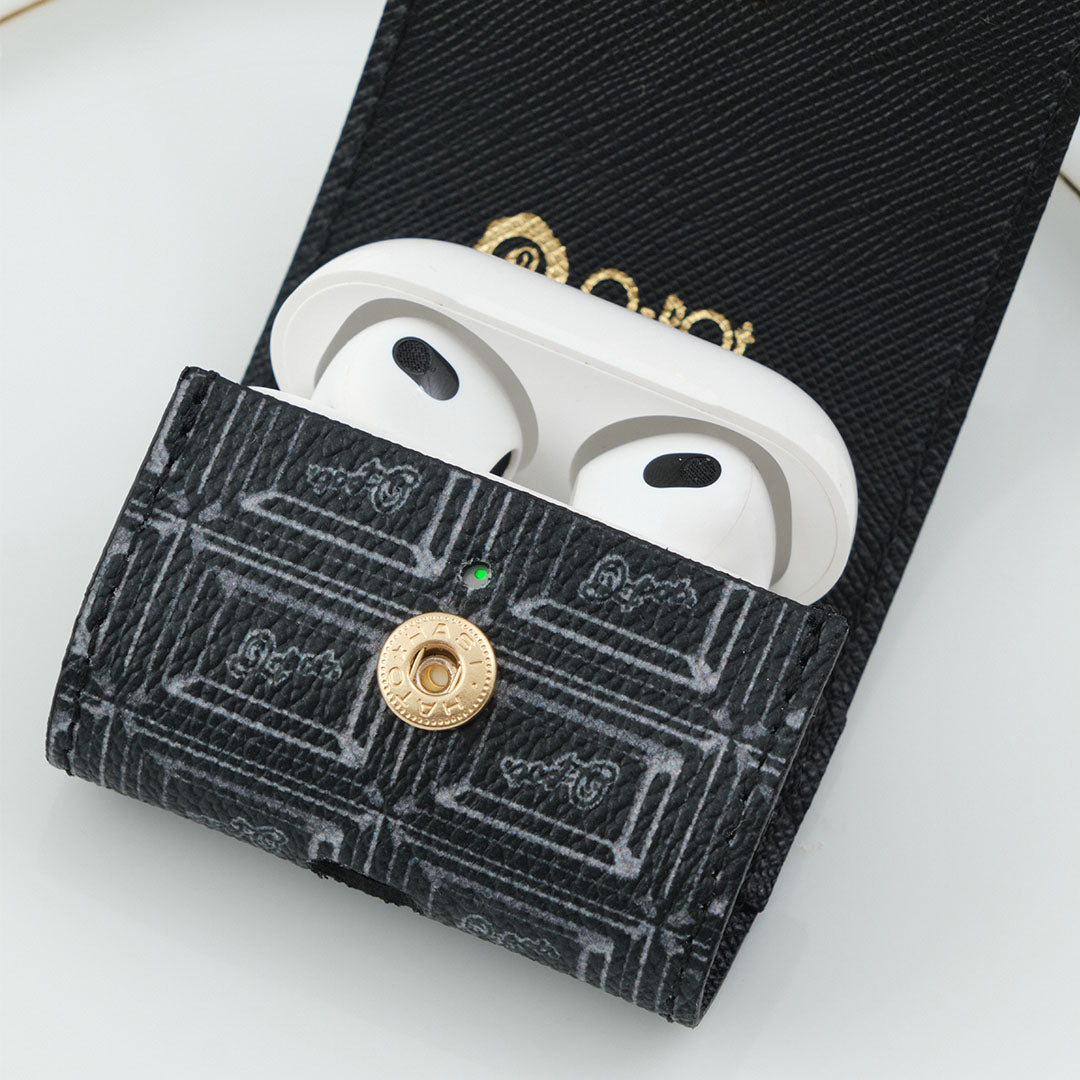 Q-pot.'s original patterned AirPods Case is practical and fashionable. The case has an opening on the bottom and can be charged while closing. Gold brand logo is designed inside. Also with a carabiner ring that you can use it by attaching it to a key, bag or belt. It's easy to carry around!