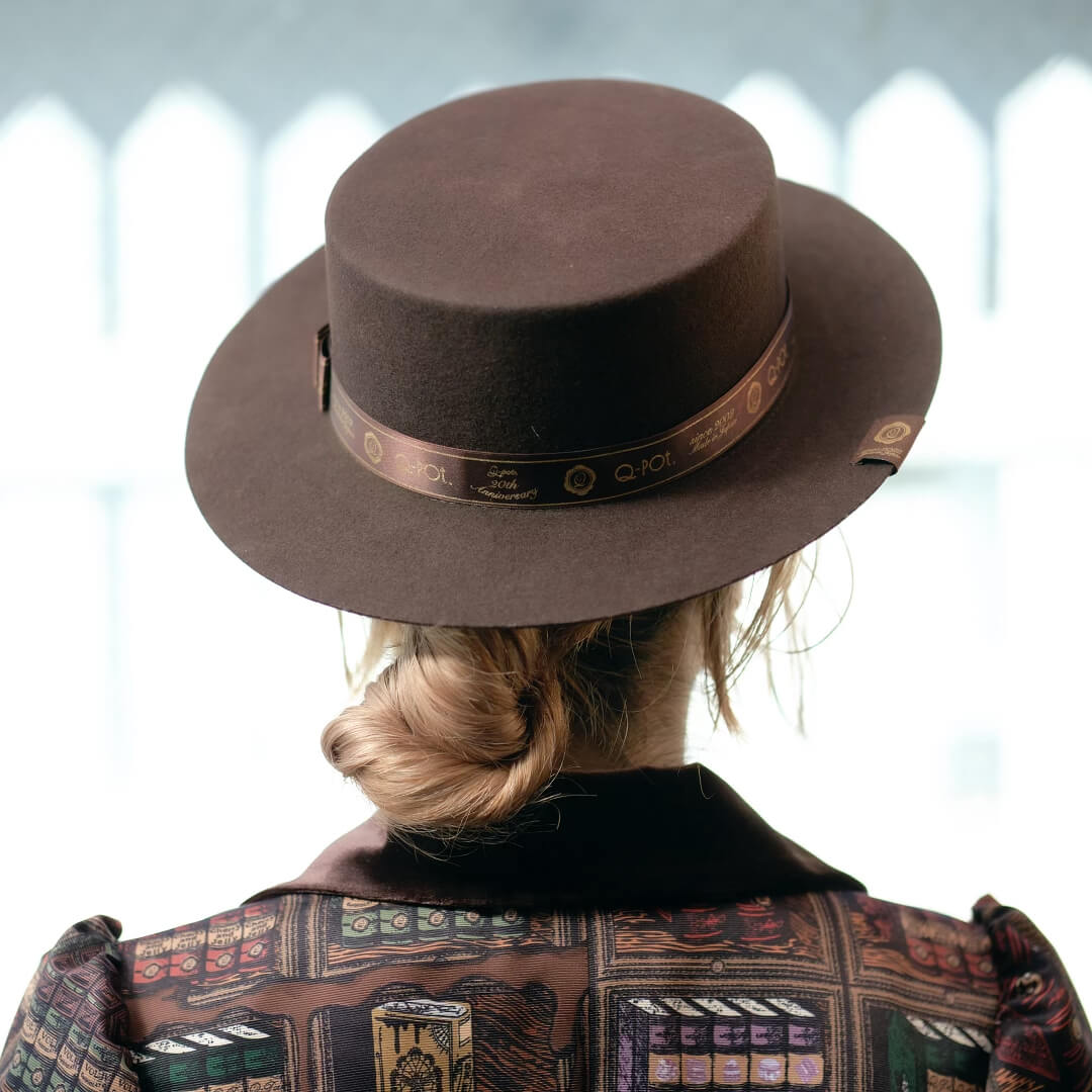A classical boater hat colored with chocolate, the signature motif of Q-pot. and also one of the fascinating sweets loved all over the world.