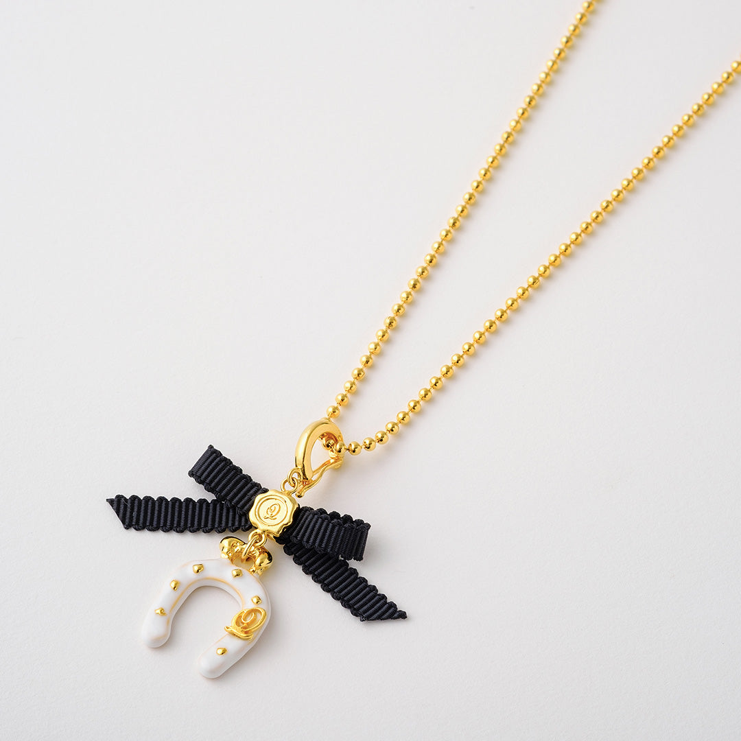 The feve jewelry with such a blessing mood is a premonition that happiness will come by wearing it! Choose your favorite feve according to your wishes. Epoxy resin-finished porcelain-like motif decorated with dazzling gold-colored Q mark on it and classical grosgrain ribbon at the top.