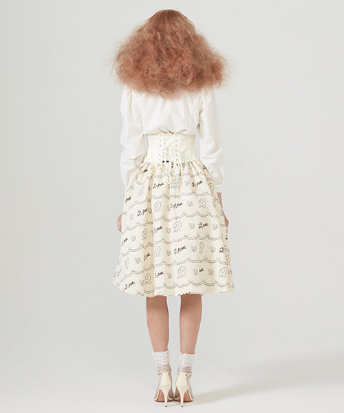 The A-line skirt in a beautiful, gentle, light and airy silhouette. The waist size can be adjusted with an adjuster rubber attatched.