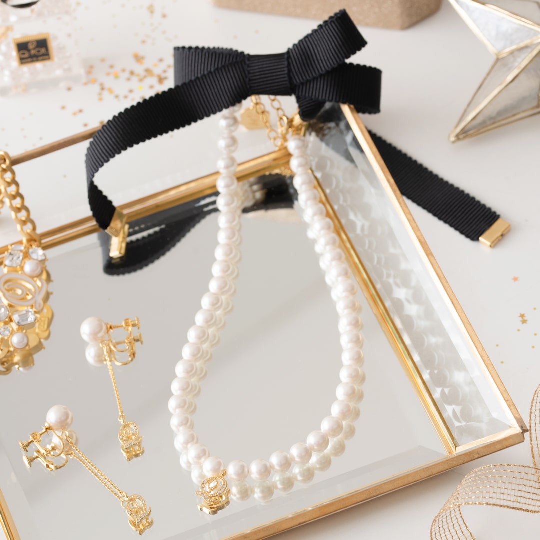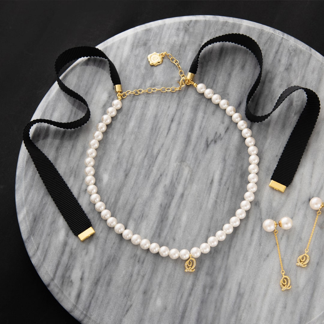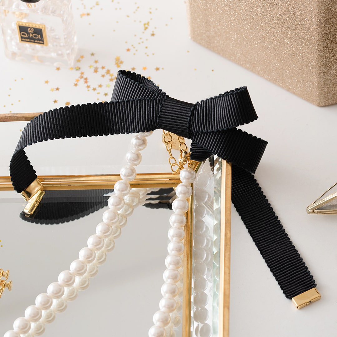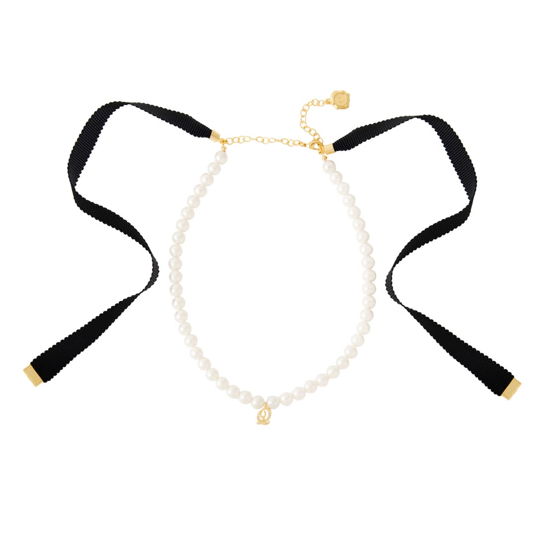 Q Pearl Ribbon Necklace (Classic Black)【Japan Jewelry】