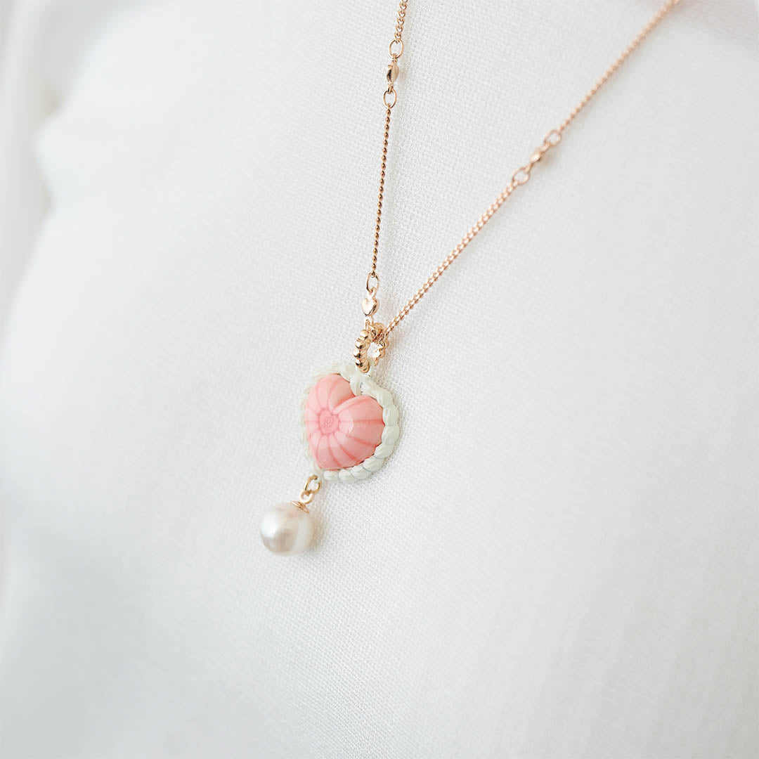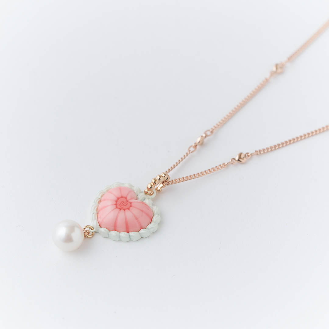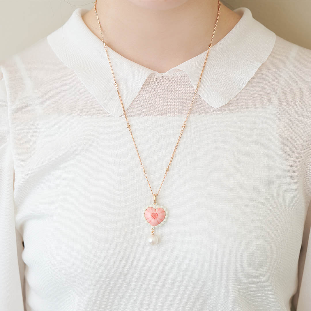 A dainty heart-shaped bavarois necklace that captures the sweet and tangy charm of strawberries.