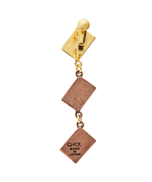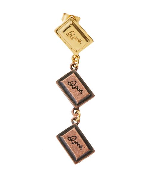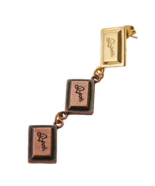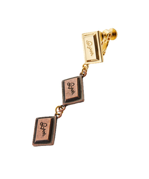 The unique 3 pieces chocolate earring with Q-pot. logo engraved is rich and elegant with the shine of bitter and gold chocolate. The design sways and sparkles every time you move, creating a gorgeous look around your face.