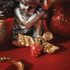 Despite its size, this graceful and delicate strawberry is rendered with impressive precision down to the smallest detail. Tiny gold dust scattered across its intricate form softly sparkles as it captures the light.