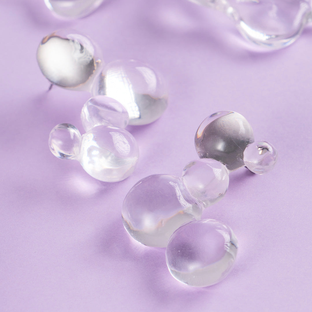 The bubbles pierced earrings that reflects light from clear bubbles of different sizes finely express the ephemeral bubbles.