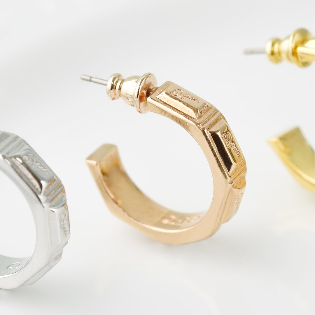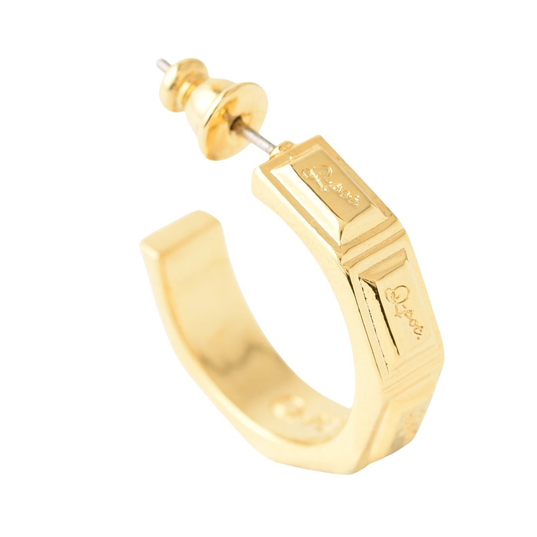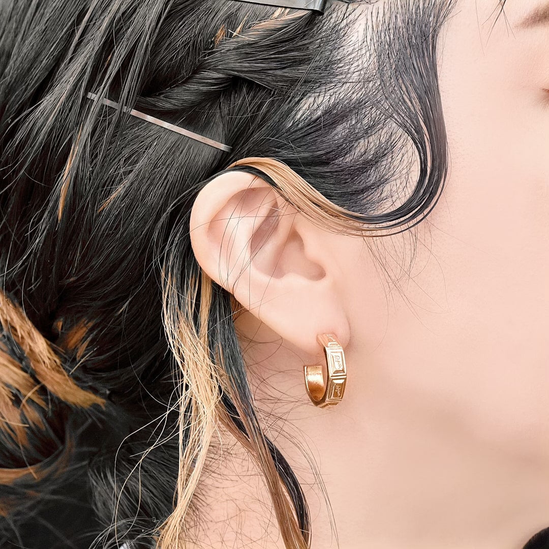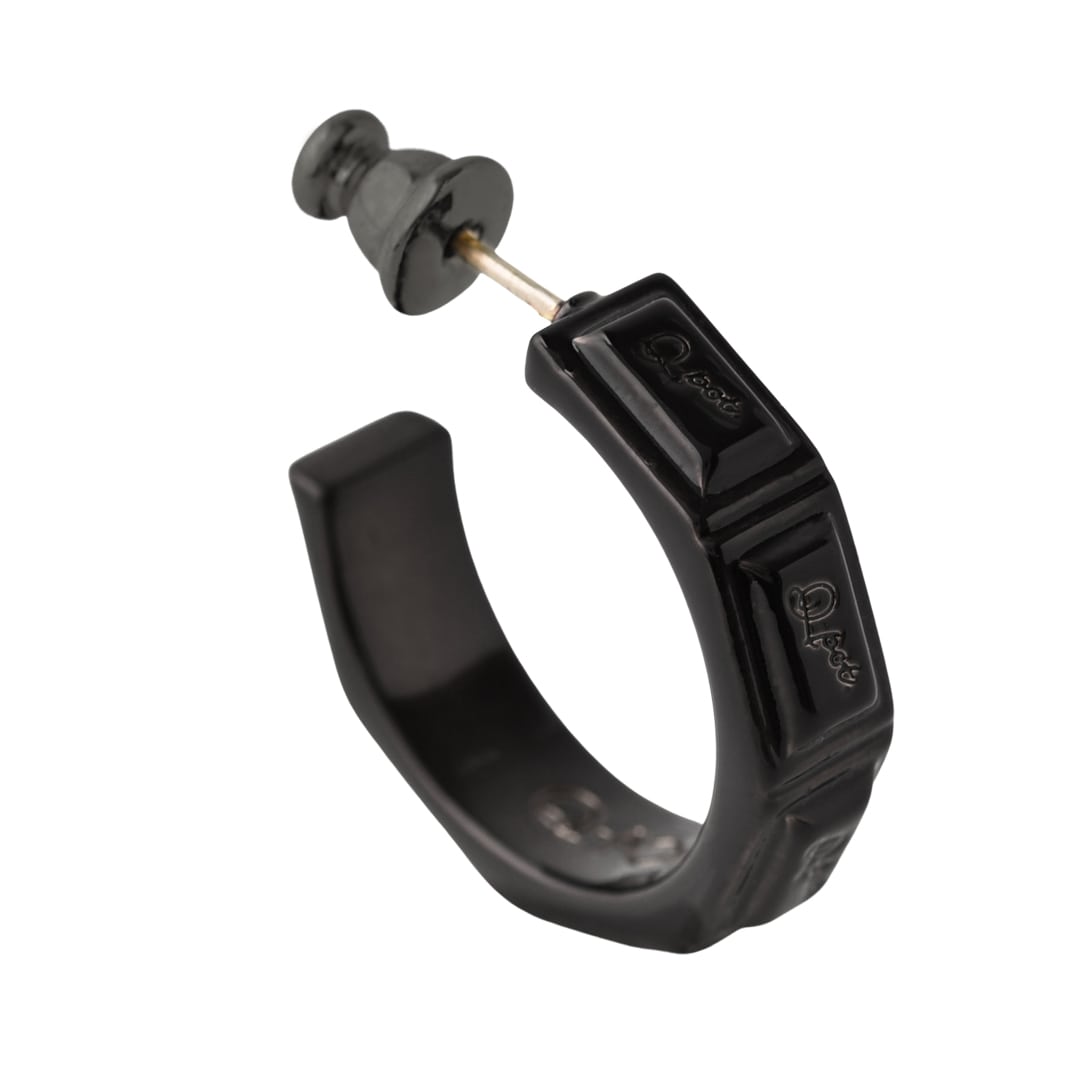 The pierced earring with a glossy texture featuring Q-pot. logo engraved just like a real one. Elevate your style by simply wearing it and add a touch of playfulness to your outfit.