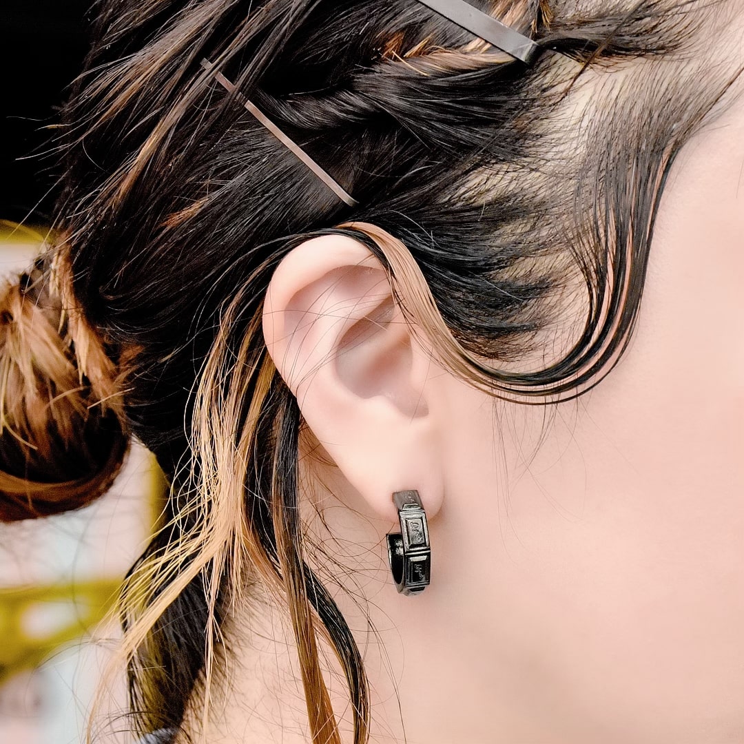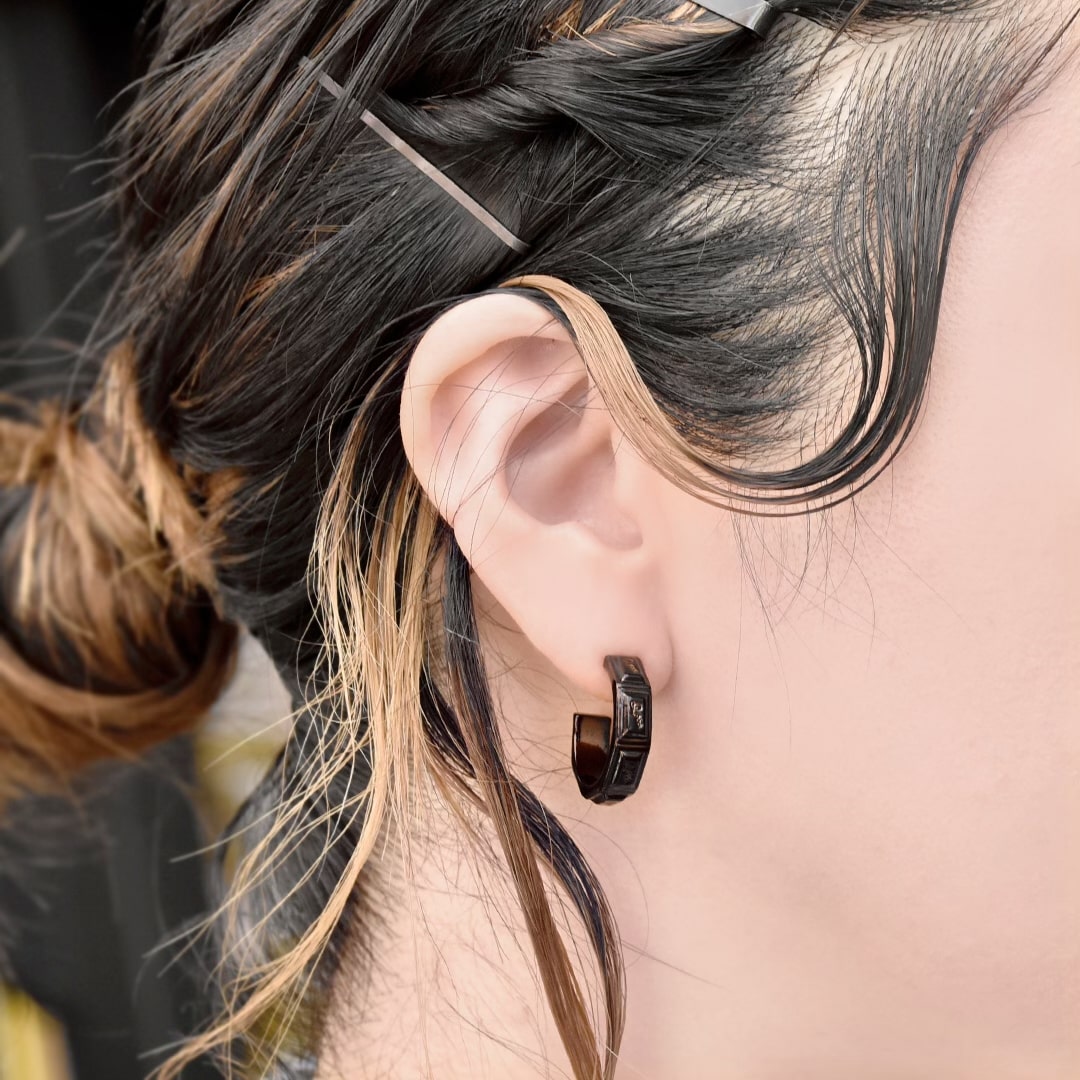 Chocolate Tablet Hoop Pierced Earring (Single)【Japan Jewelry】