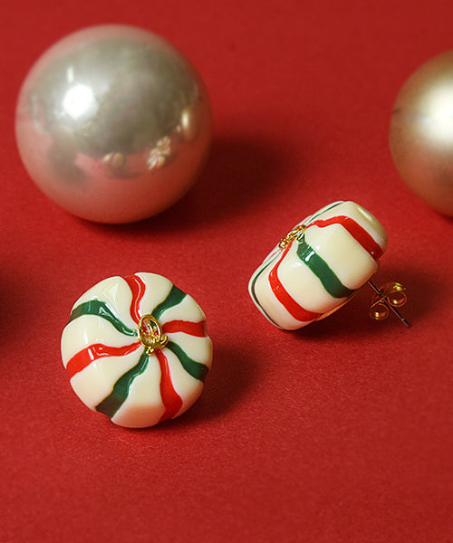 The candy earrings, with the charming round shape, are brimming with festive Christmas spirit. Just like decorating a Christmas tree, these earrings add a splash of color to your winter outfits.