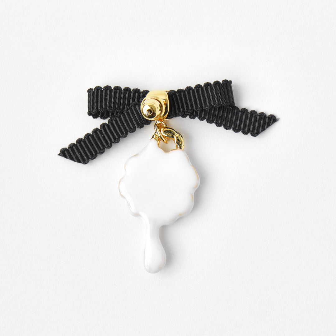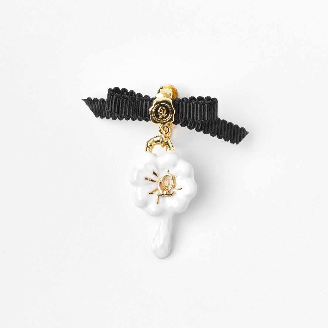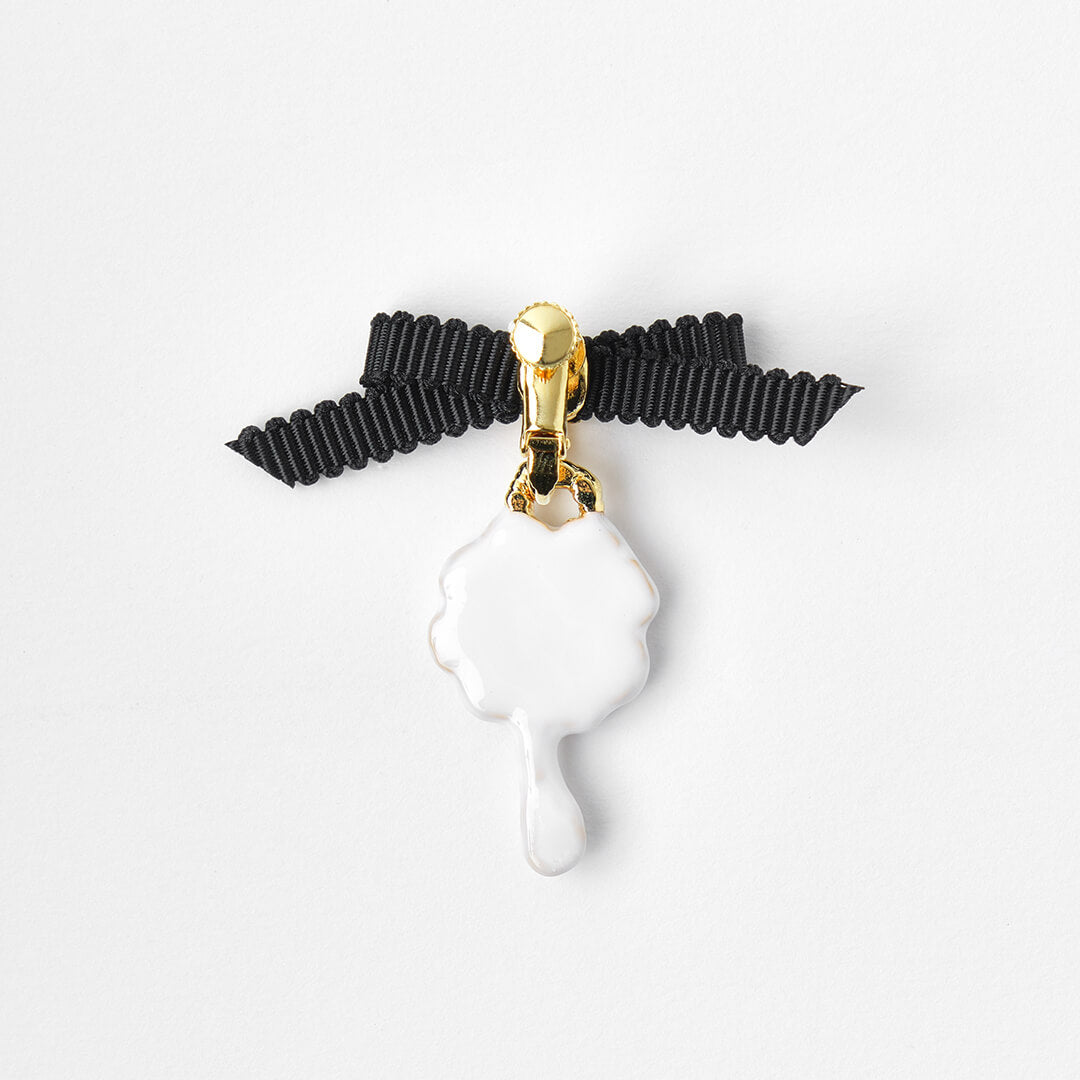 The feve jewelry with such a blessing mood is a premonition that happiness will come by wearing it! Choose your favorite feve according to your wishes. Epoxy resin-finished porcelain-like motif decorated with dazzling gold-colored Q mark on it and classical grosgrain ribbon at the top.