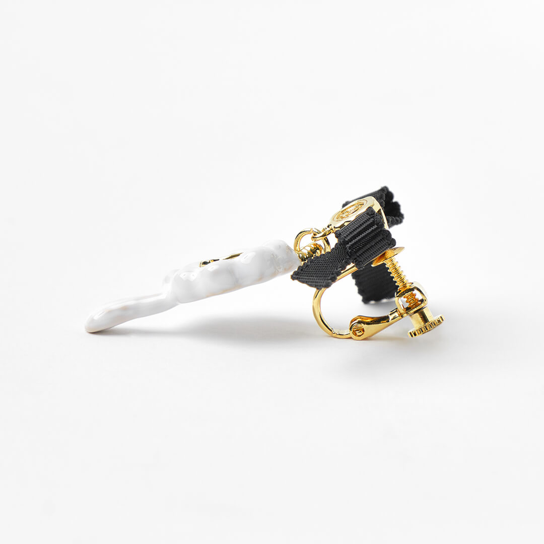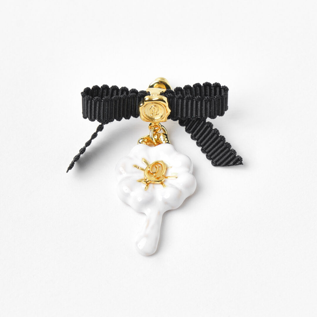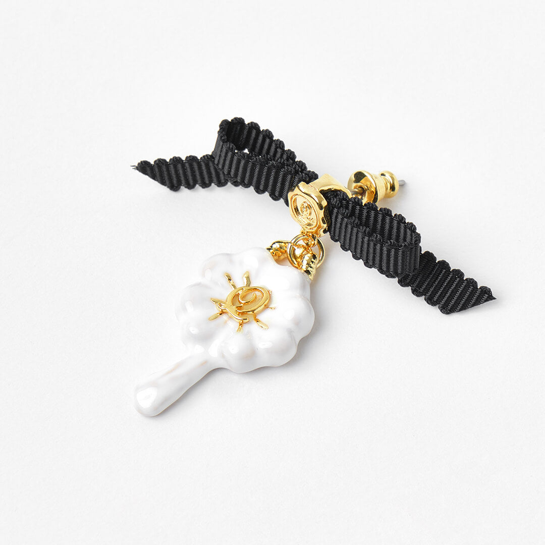The feve jewelry with such a blessing mood is a premonition that happiness will come by wearing it! Choose your favorite feve according to your wishes. Epoxy resin-finished porcelain-like motif decorated with dazzling gold-colored Q mark on it and classical grosgrain ribbon at the top.