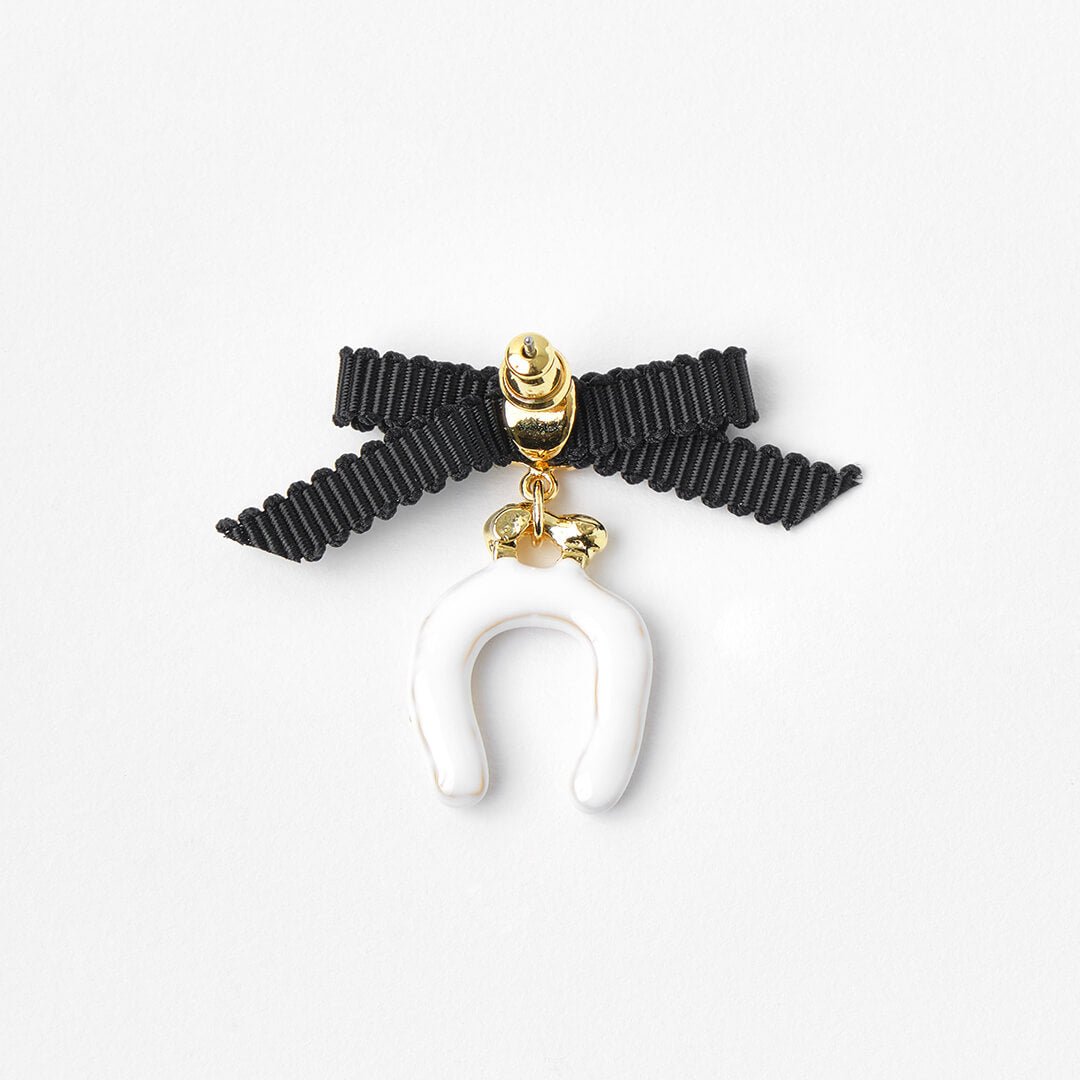 The feve jewelry with such a blessing mood is a premonition that happiness will come by wearing it! Choose your favorite feve according to your wishes. Epoxy resin-finished porcelain-like motif decorated with dazzling gold-colored Q mark on it and classical grosgrain ribbon at the top.