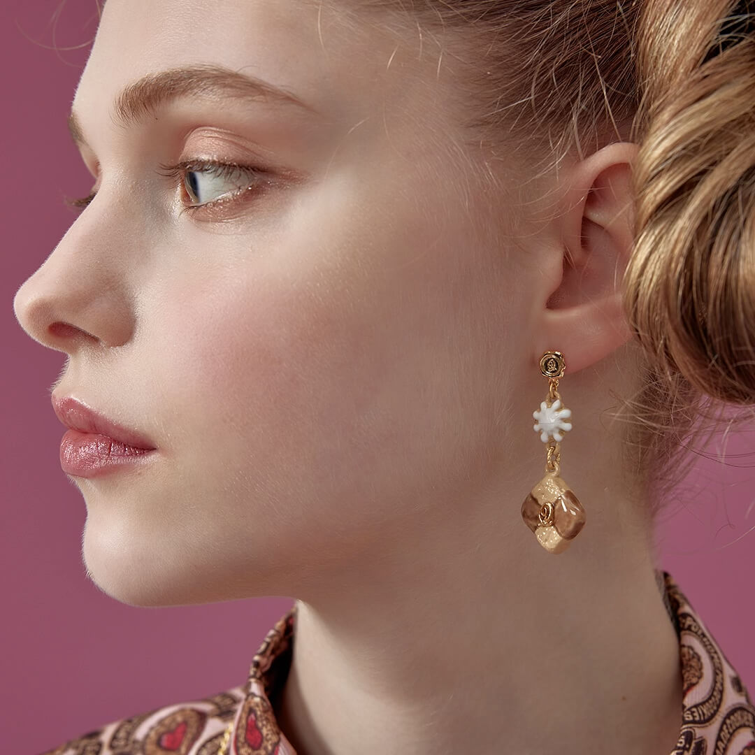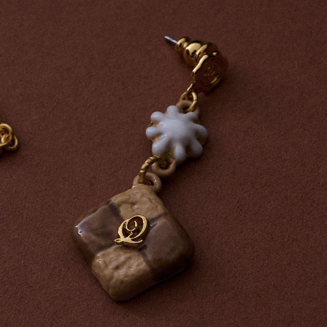 This earring is made up of icing cookie and icebox cookie, and have a cute silhouette that sways around.