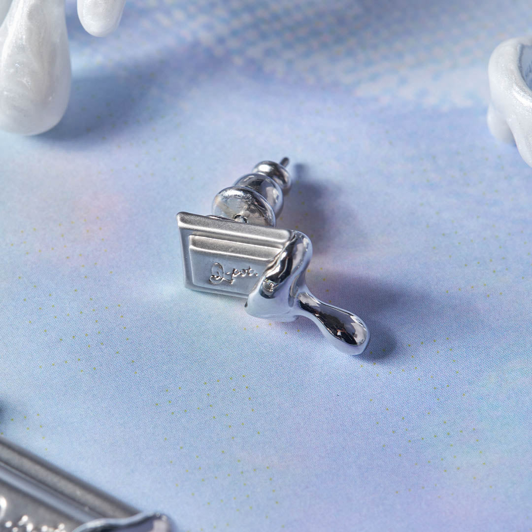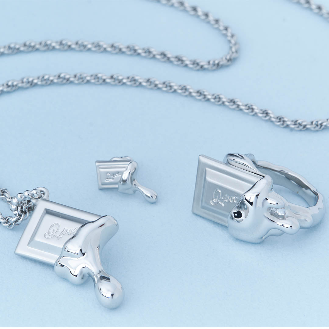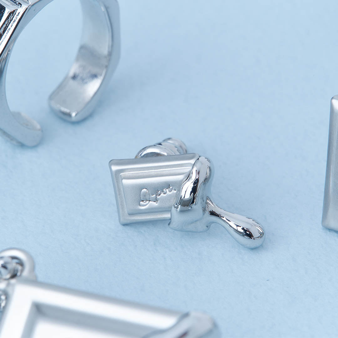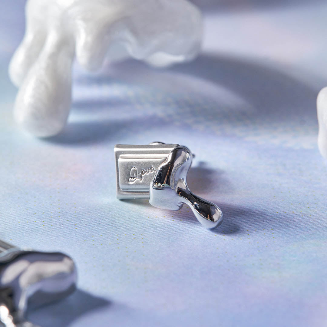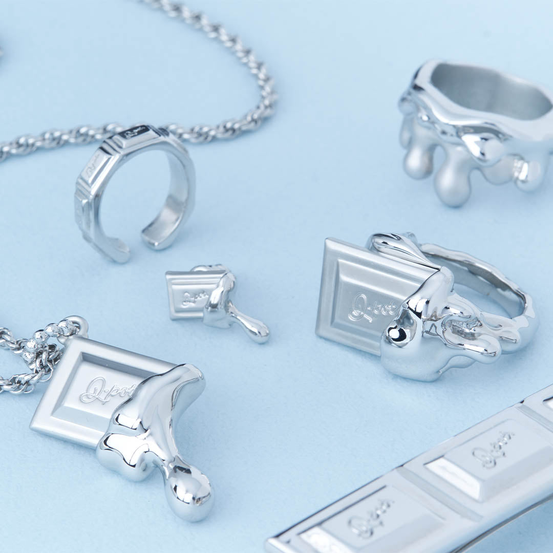 Piece of chocolate with Q-pot. logo engraved and dazzling dripping silver to express the moment of melting. The simple and sophisticated design goes well with a wide range of outfit. Enjoy Q-pot.'s wearable pop art!