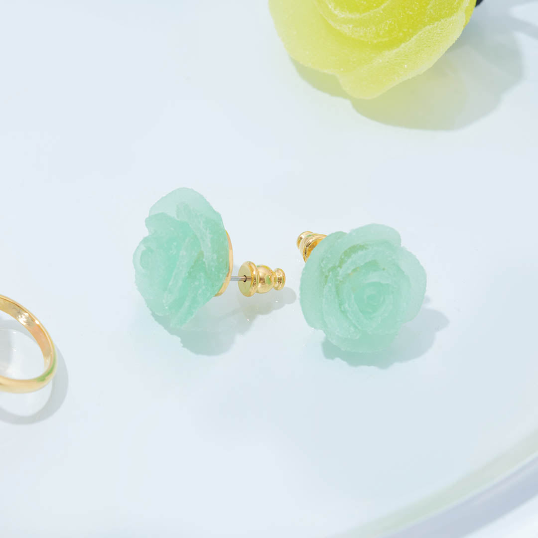 Green Apple Rose Petit Pate de Fruit Pierced Earrings (Pair)【Japan Jewelry】