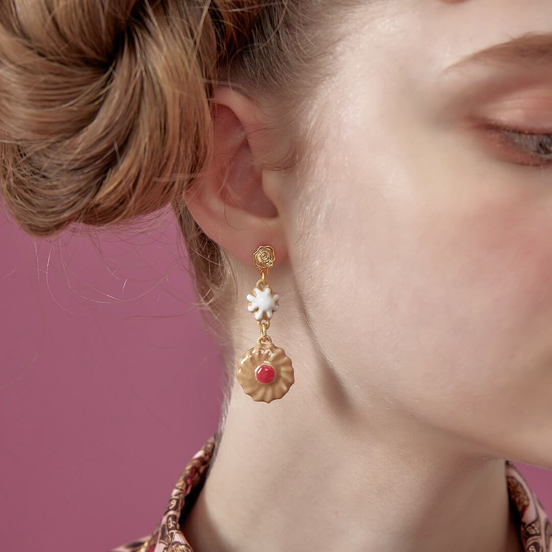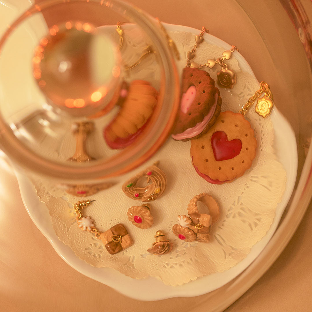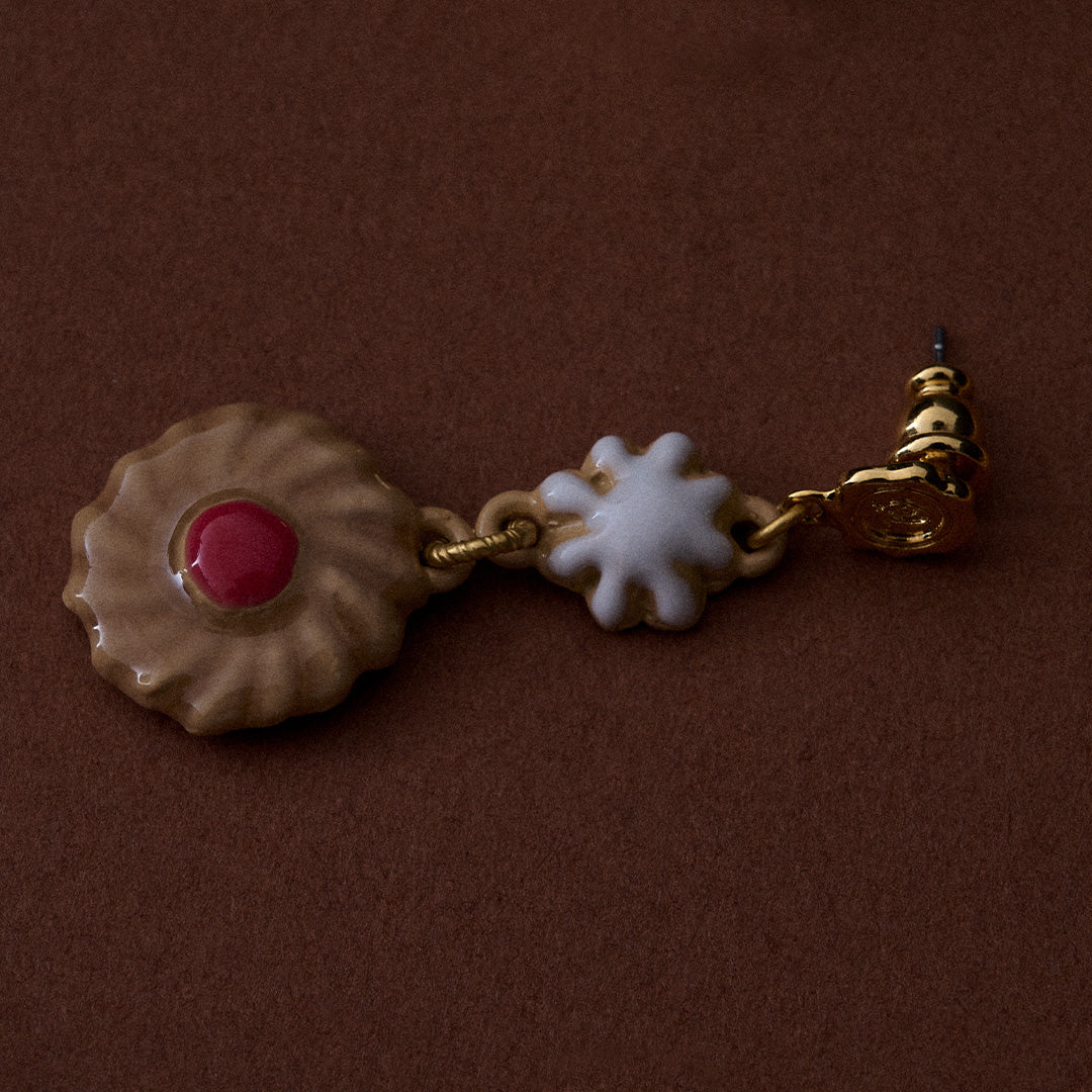 This earring is made up of icing cookie and jam cookie, and have a cute silhouette that sways around.