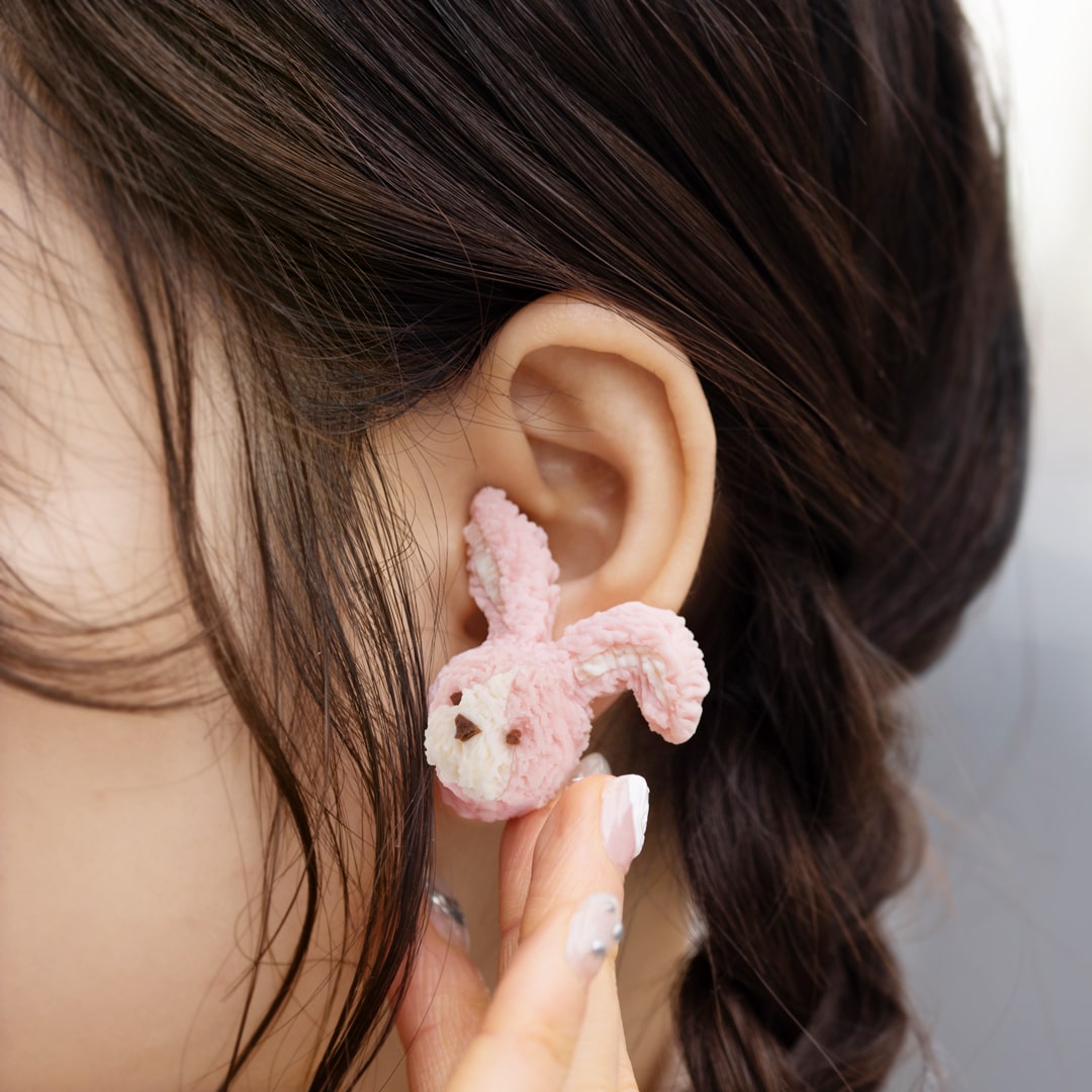 Strawberry Milk Rabbit Cookie's Face Earring (Single)【Japan Jewelry】