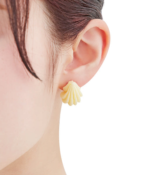 Whipped cream with a beautiful shell-like shape. The elegant and cute single whipped cream earrings will sweetly decorate your ears. This collection goes well with other sweets accessories, such as cake, macaron, and doughnut collection.