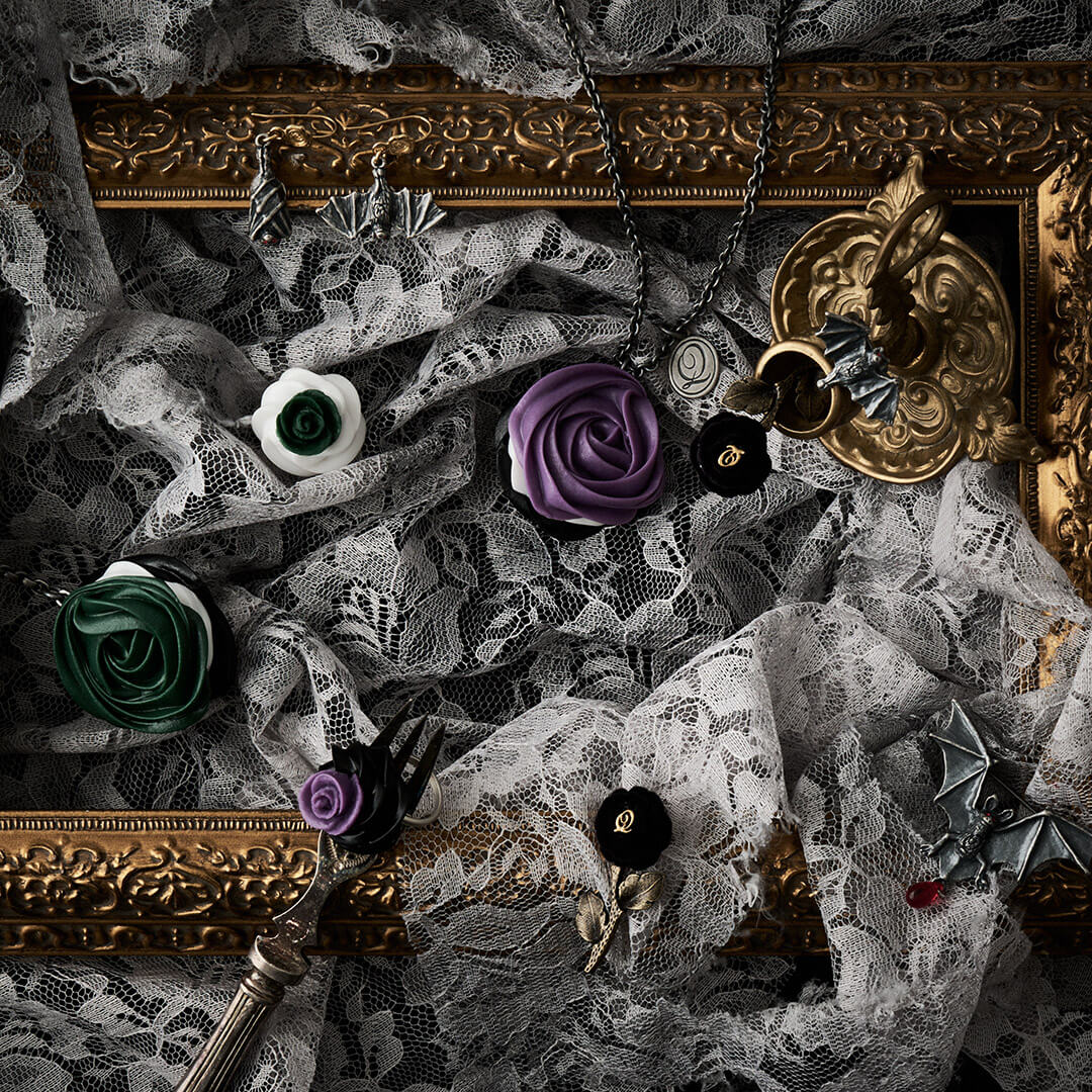 Black rose implies death, hatred and also endless mentions. Very detailed rose-shaped macaron filled with plenty of cream. Fully gothic mood items are good matching for classical style. You can enjoy two-toned in one item. All made in Japan with craftsmanship are made like art piece.