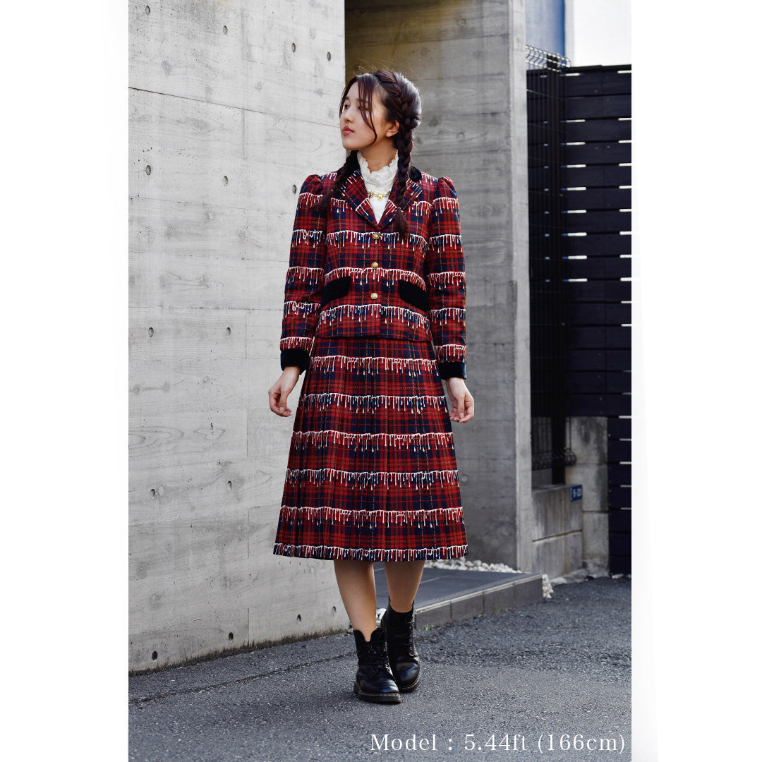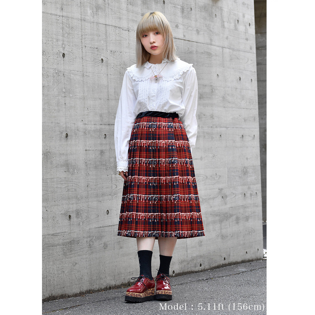 【Poppy Collaboration】High Waist Pleaded Skirt (Red)