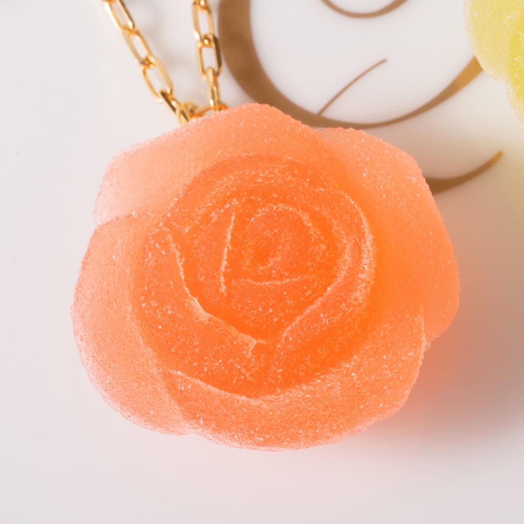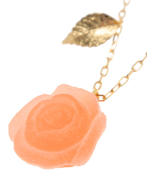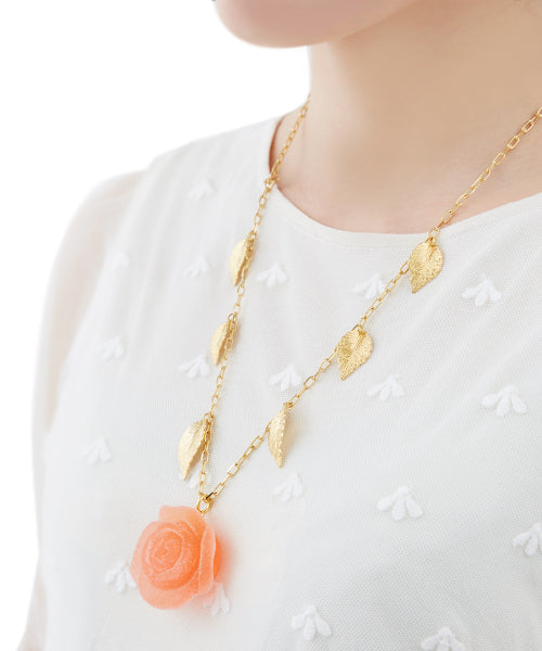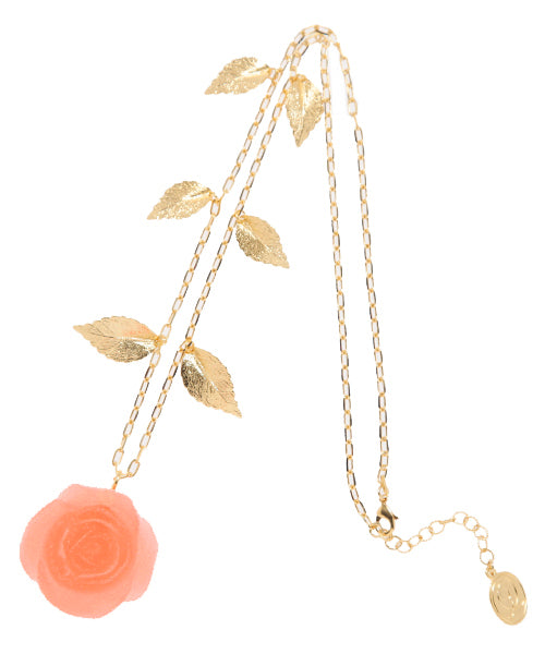 A glamorous necklace featuring romantic rose pate de fruit and leaves of rose on the chain, bold and eye-catching size adds a touch of elegance to any outfit.