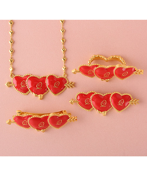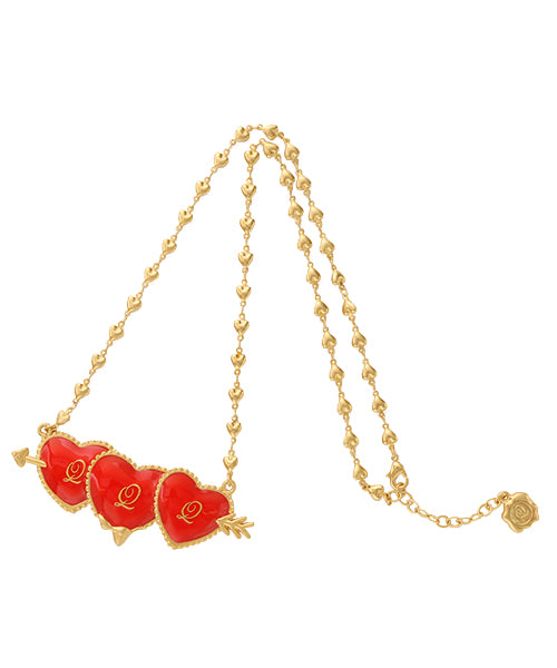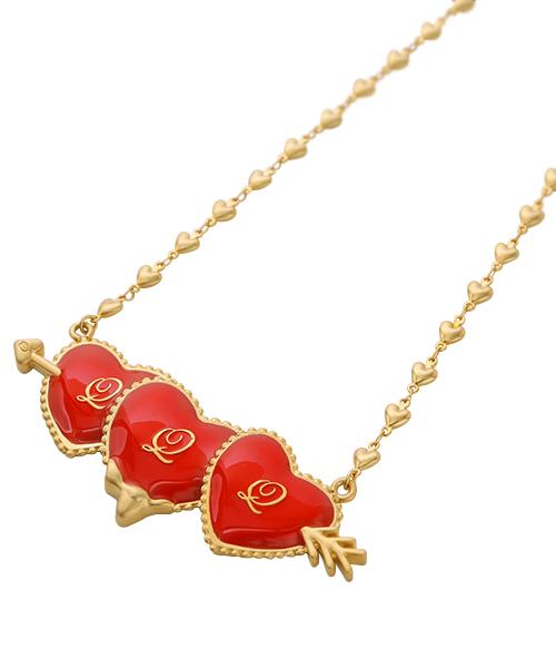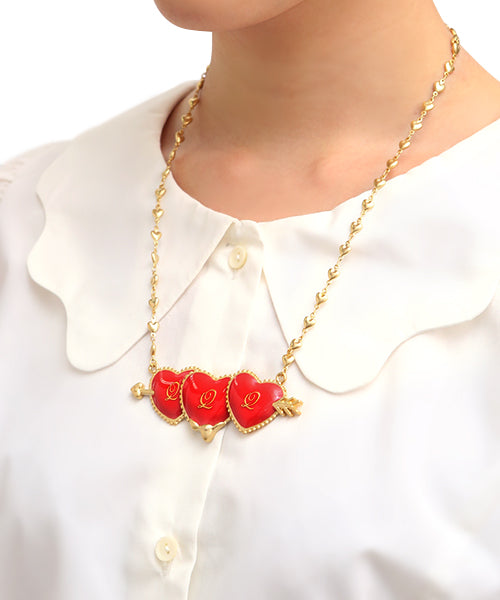 The bright red arrow heart, which symbolizes love, has an outstanding presence and the point of today's outfit. The design is high quality yet playful. As for the necklace, the chain is also a heart. The attention to details and cuteness will make catch your heart!