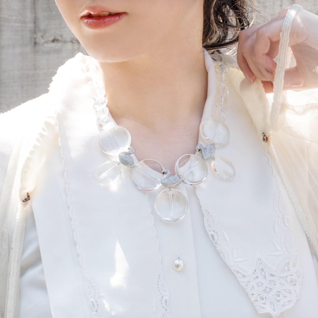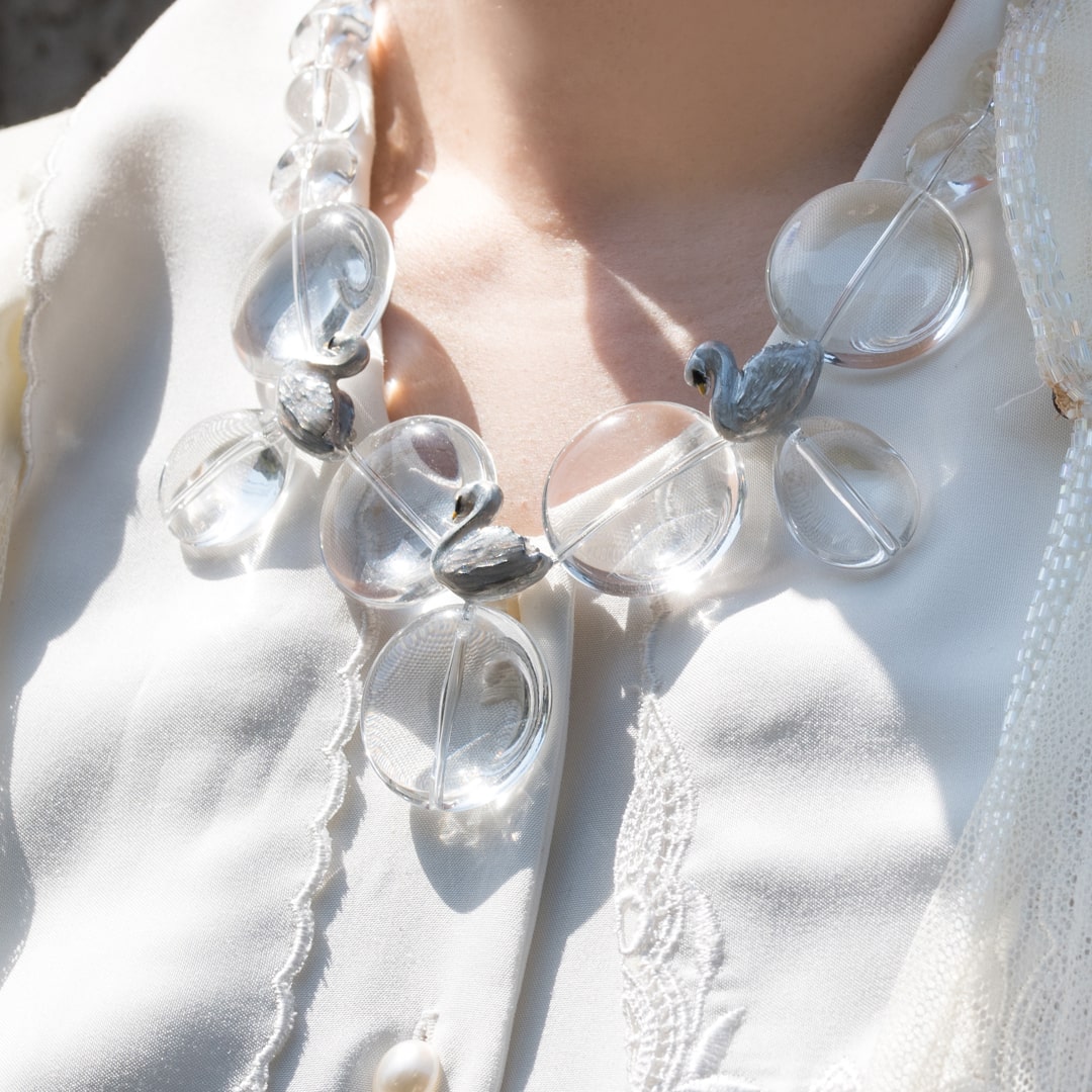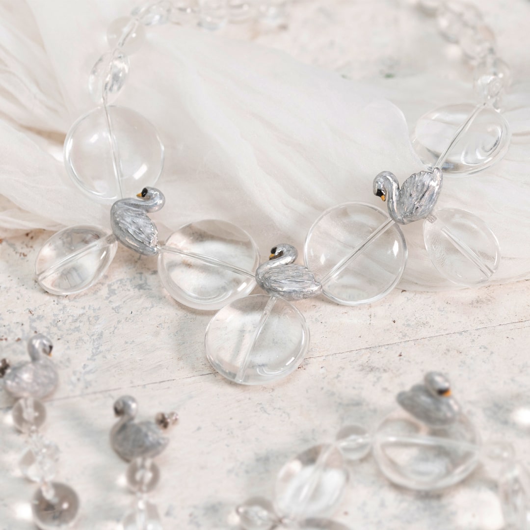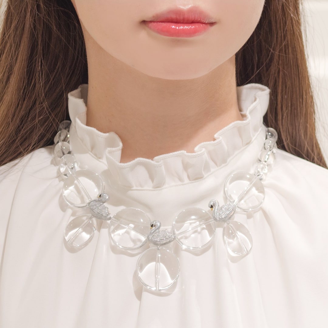 Swans taking a rest by the lake, this is a collection inspired by the beautiful scene like in ballet. The clear necklace is like lake shining under the sun light and swan with glitter beautiful details that handmade each by Japanese craftsmen. You can enjoy a little time of peace by touching the beauty of Japan jewelry.
