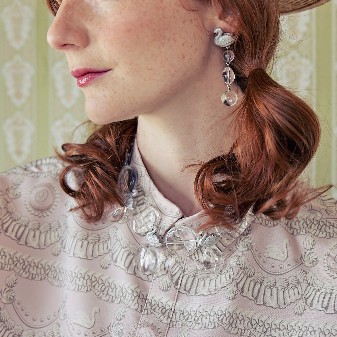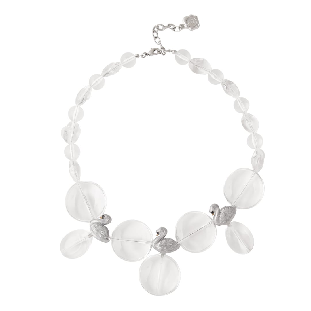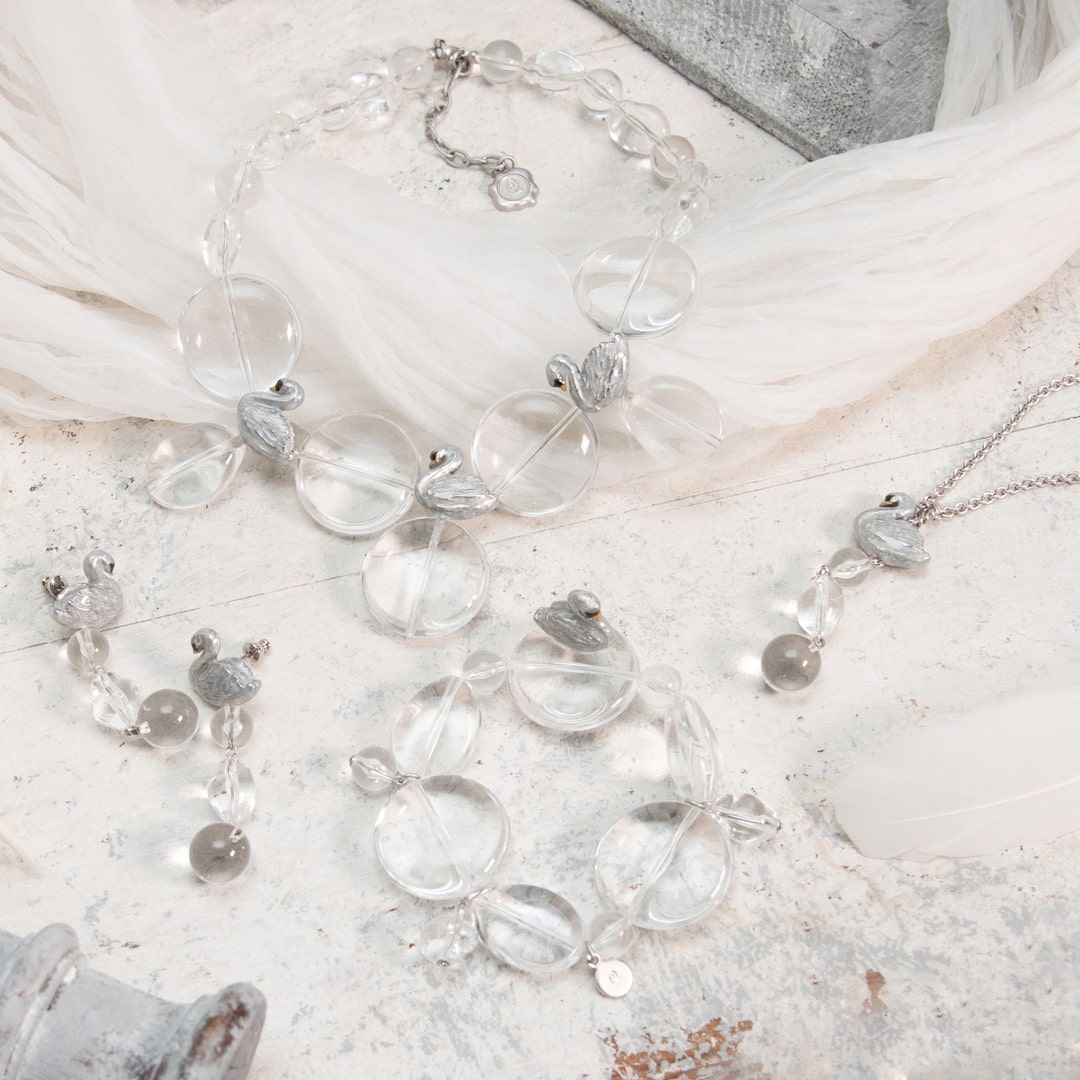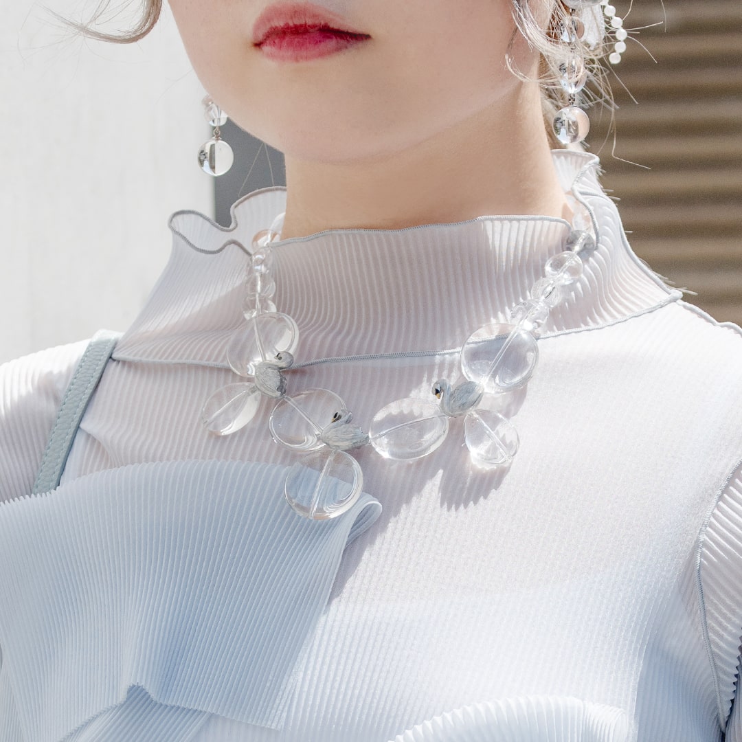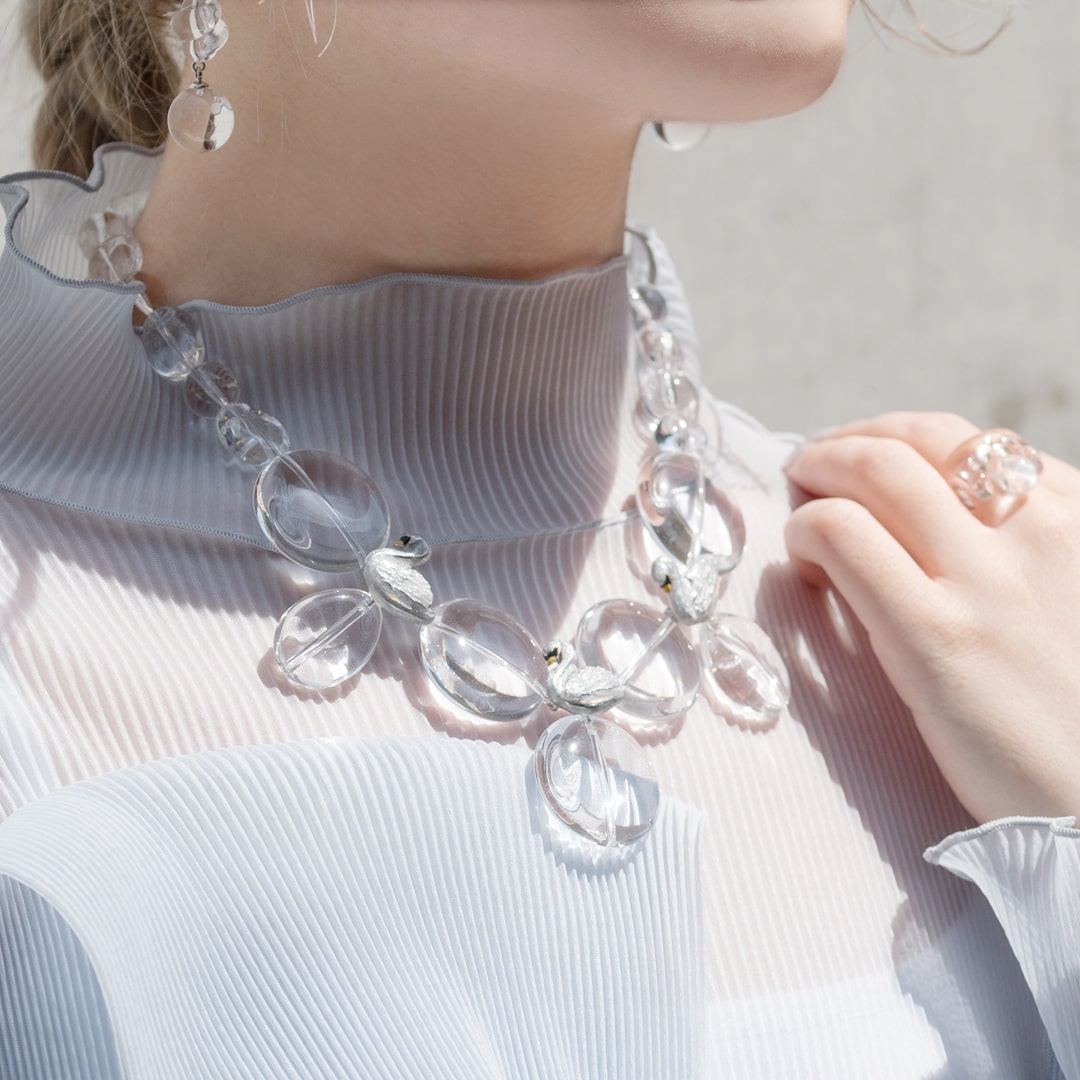 Swans taking a rest by the lake, this is a collection inspired by the beautiful scene like in ballet. The clear necklace is like lake shining under the sun light and swan with glitter beautiful details that handmade each by Japanese craftsmen. You can enjoy a little time of peace by touching the beauty of Japan jewelry.