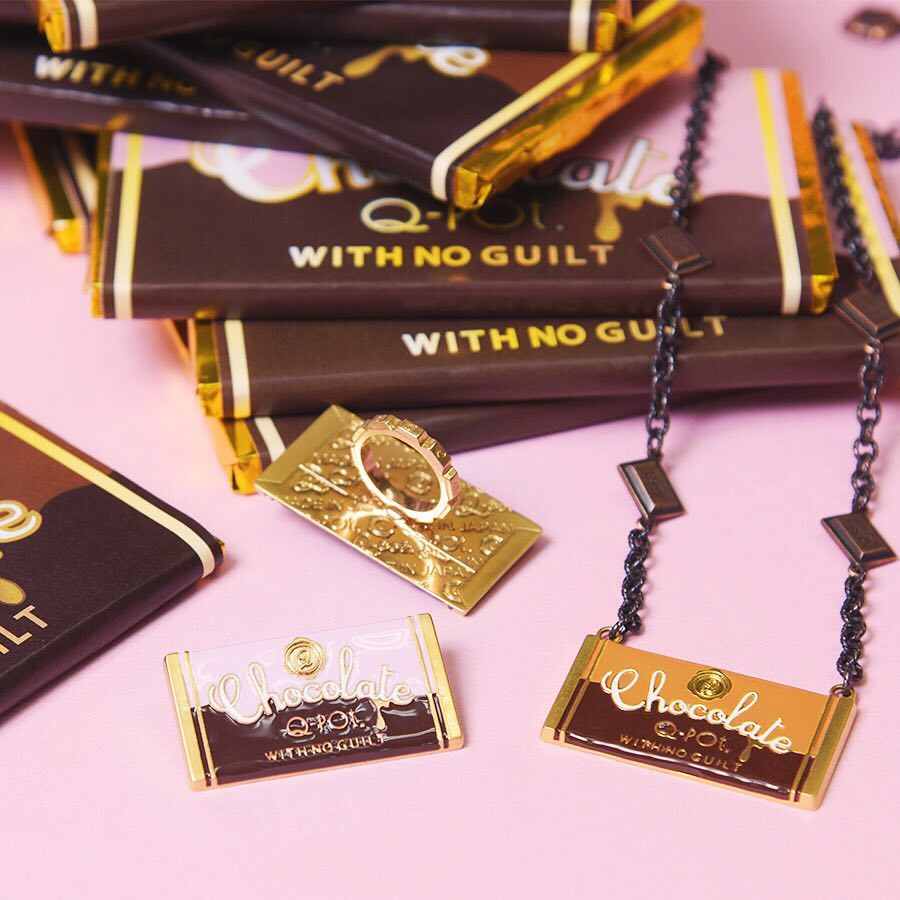 Special chocolate by Q-pot. with retro pop package, even the back is finely sealed; the message “WITH NO GUILT” on the package. You can enjoy Q-pot. Chocolate by your eyes not mouth.