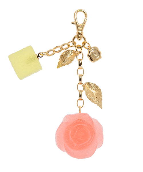 A glamorous bag charm featuring romantic rose pate de fruit and adorable bite-sized square pate de fruit. Its bold and eye-catching size adds a touch of elegance to any outfit.