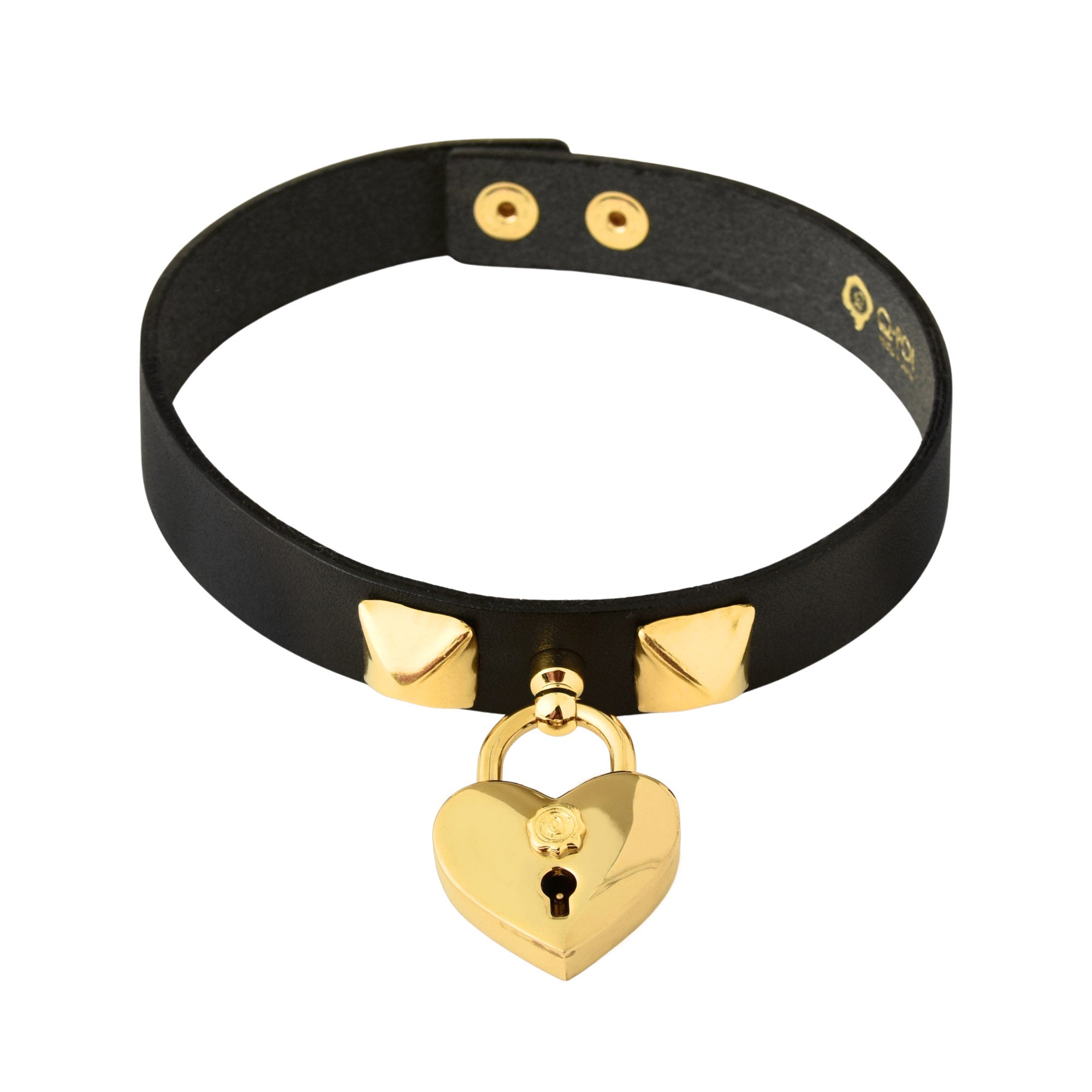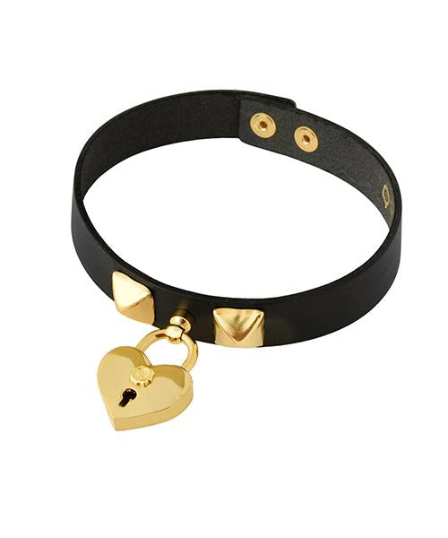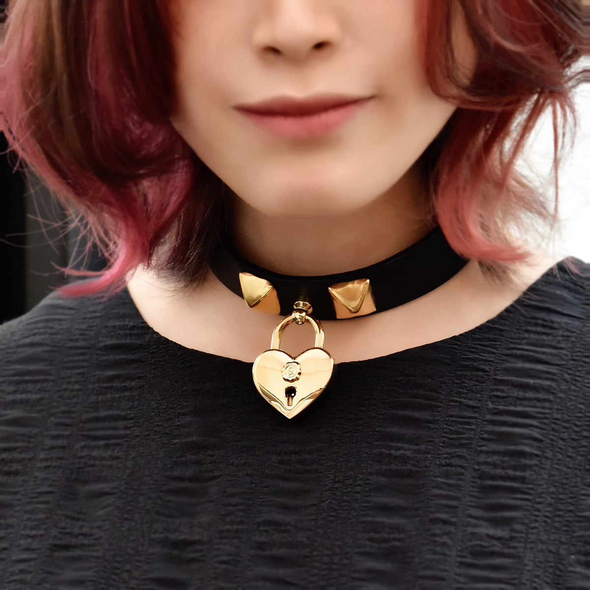 Genuine leather with gold studs embellished with a heart-shaped padlock, the choker that you can fully enjoy the feeling of rock.