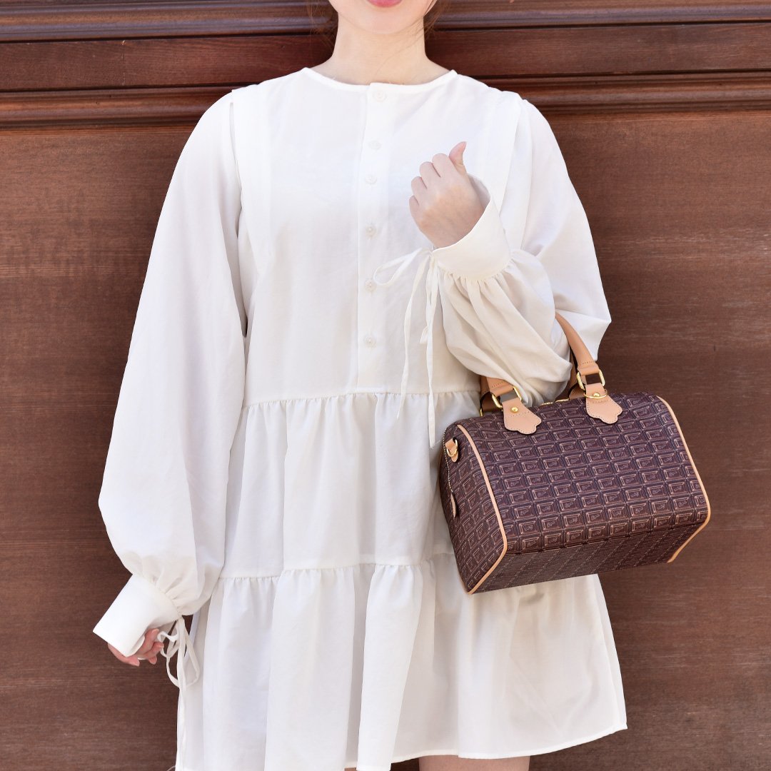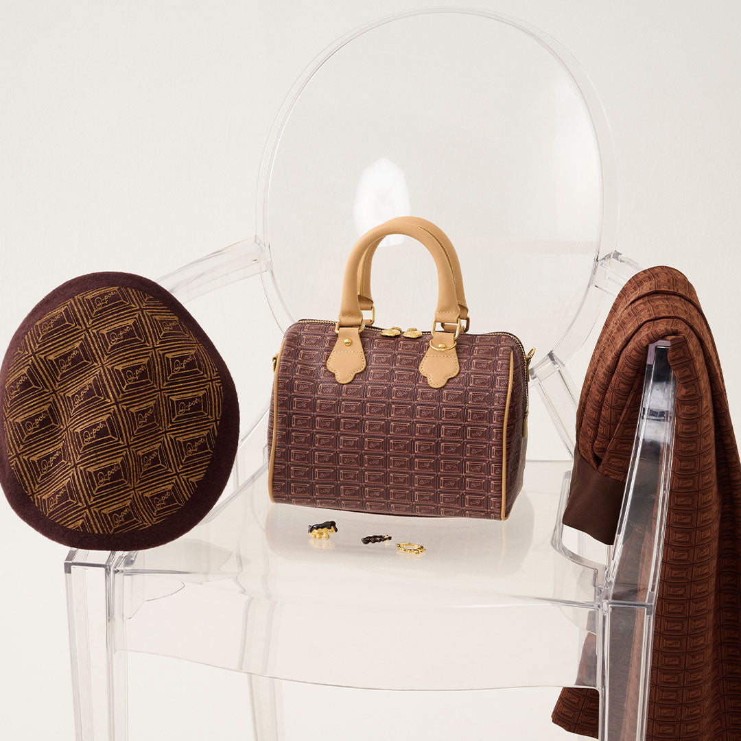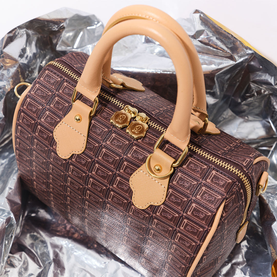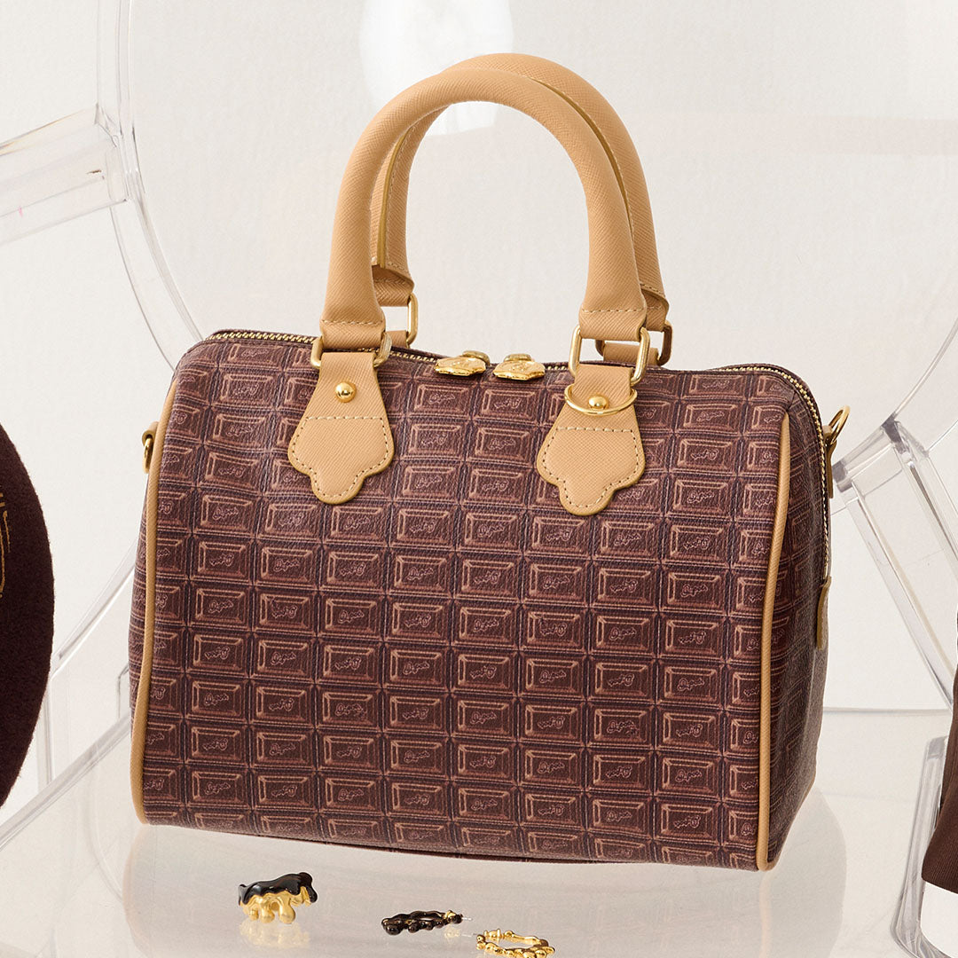Inspired by a rich chocolate bar, this mini Boston bag is crafted from high-quality cowhide leather and handmade in Japan with thoughtful detailing. Though compact at first glance, its boxy silhouette and wide gusset offer ample room for your everyday essentials — including a long wallet, compact makeup pouch, and even a small water bottle.