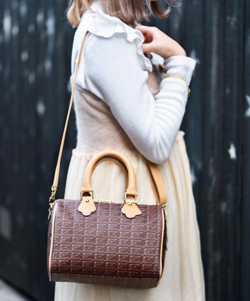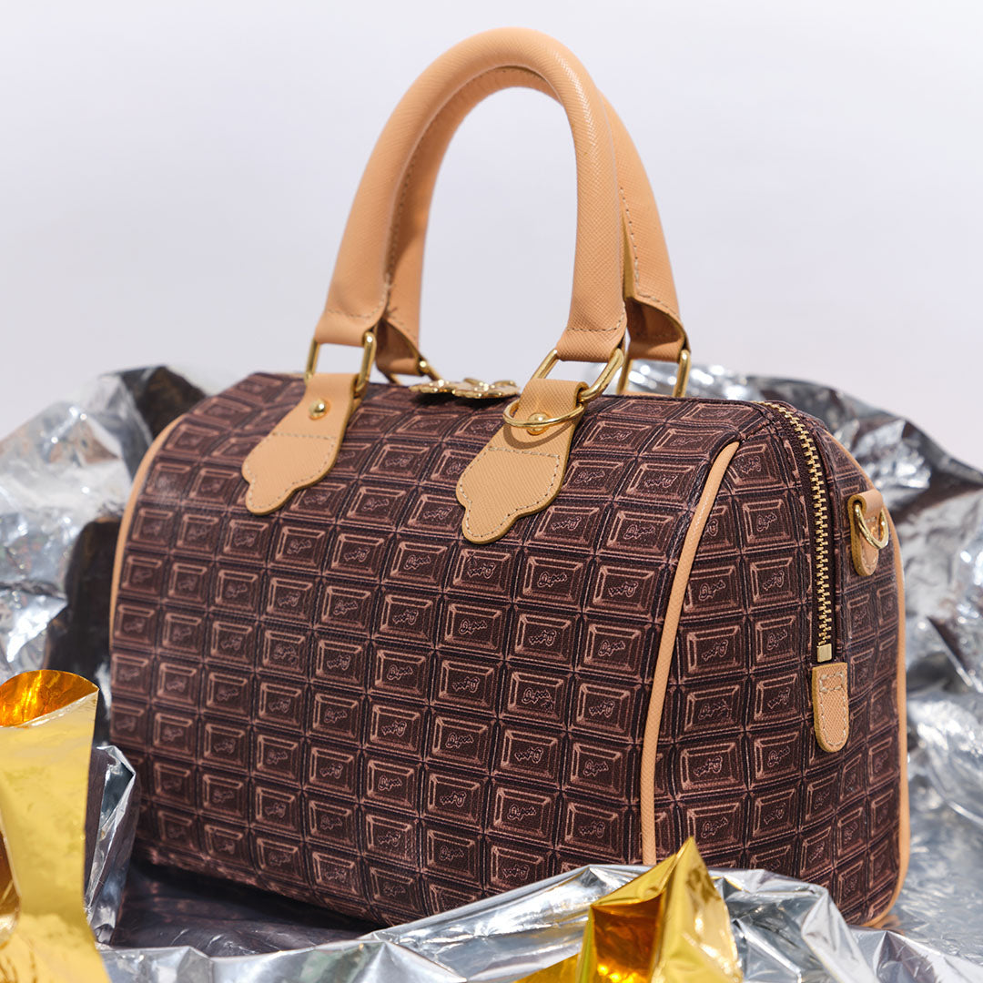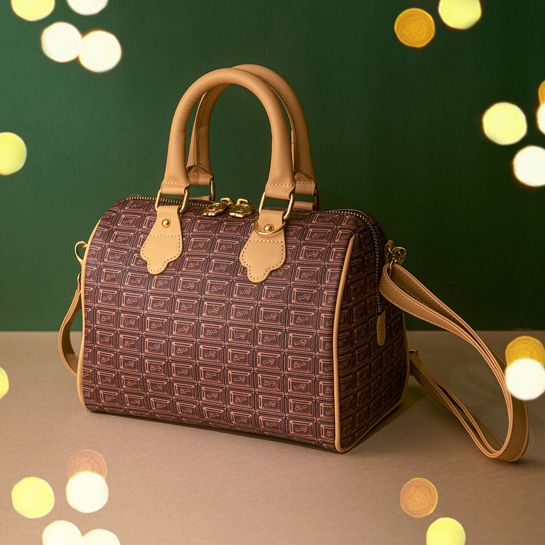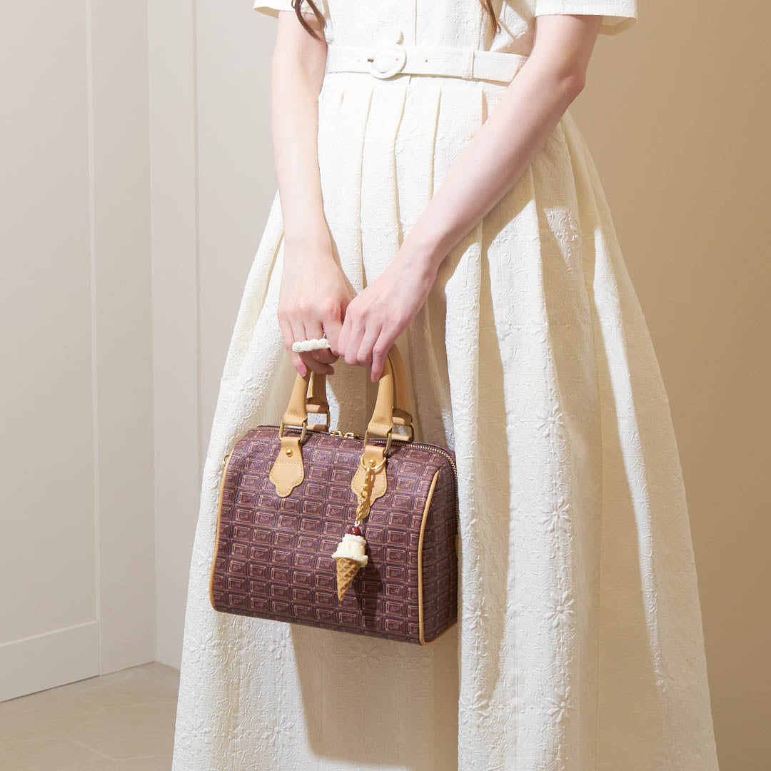 Inspired by a rich chocolate bar, this mini Boston bag is crafted from high-quality cowhide leather and handmade in Japan with thoughtful detailing. Though compact at first glance, its boxy silhouette and wide gusset offer ample room for your everyday essentials — including a long wallet, compact makeup pouch, and even a small water bottle.
