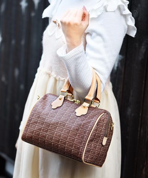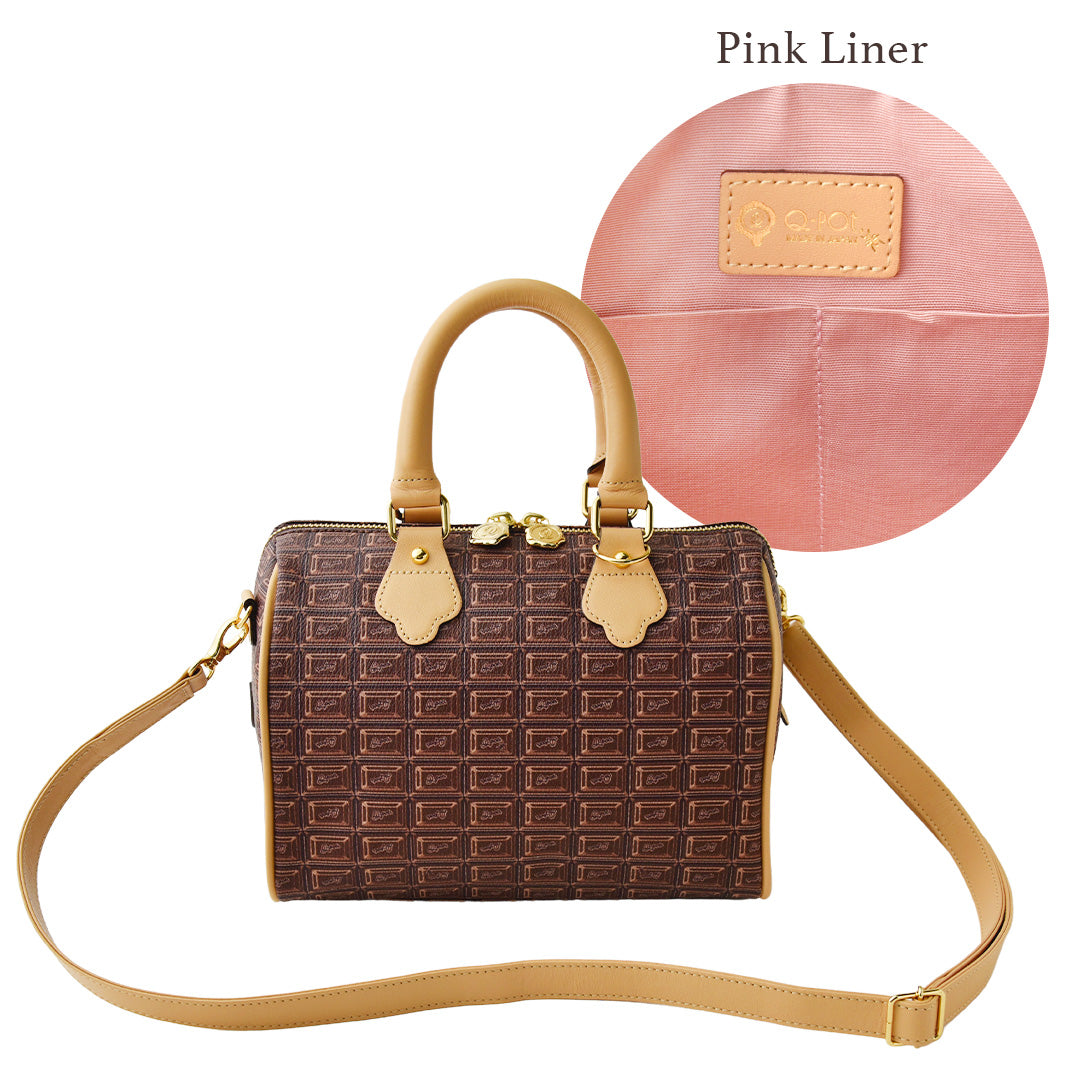 Chocolate Mini Boston Leather Bag (Pink Liner)【Japan Jewelry】