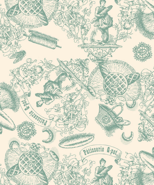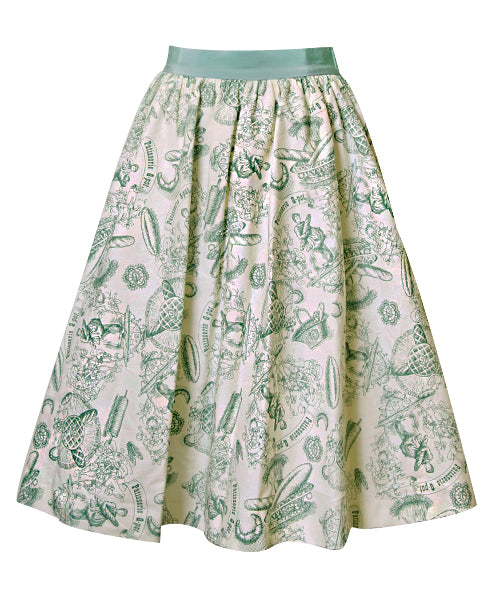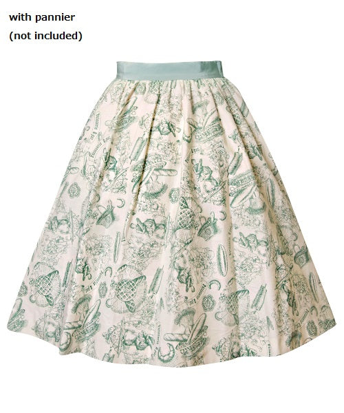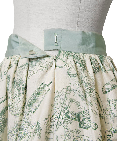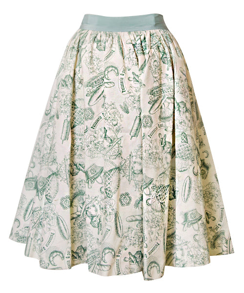 Baguettes, rolling pins and baskets. An original pattern designed skirt with a vintage feel.